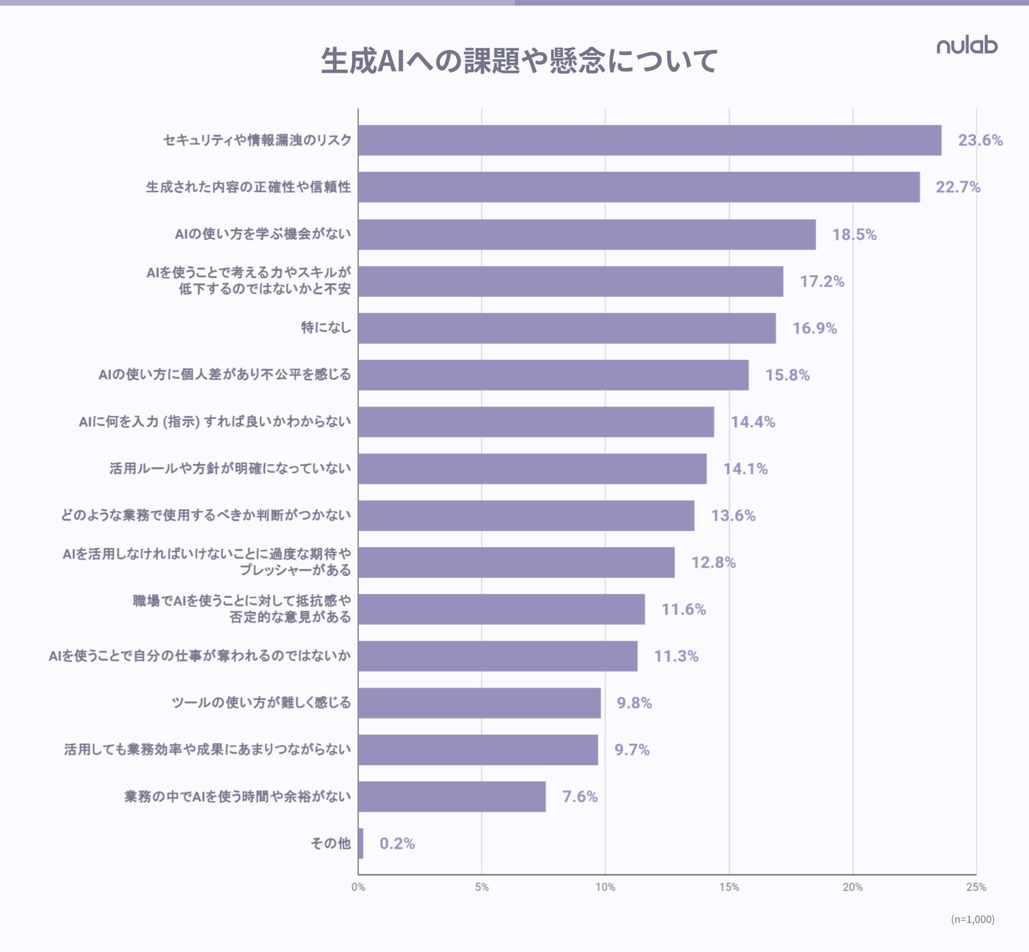 回答者の約16%(一般職では18.0%)が「AIの使い方に個人差があり、不公平に感じる」と回答しており、AI活用の効果が一部に偏っている状況が見られます。