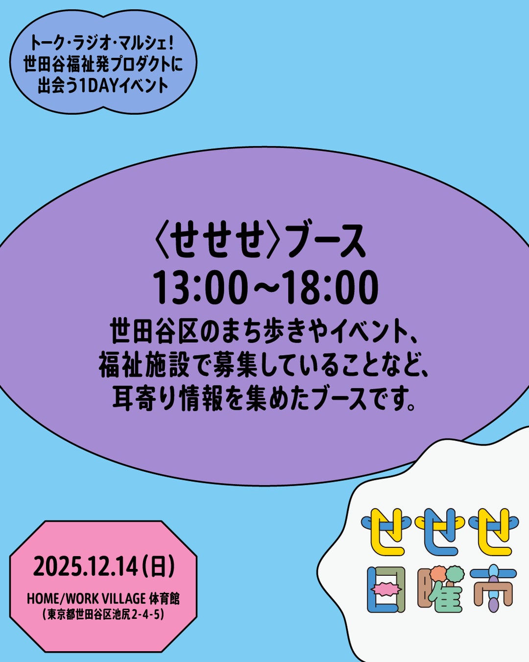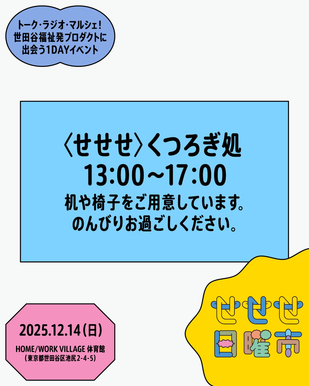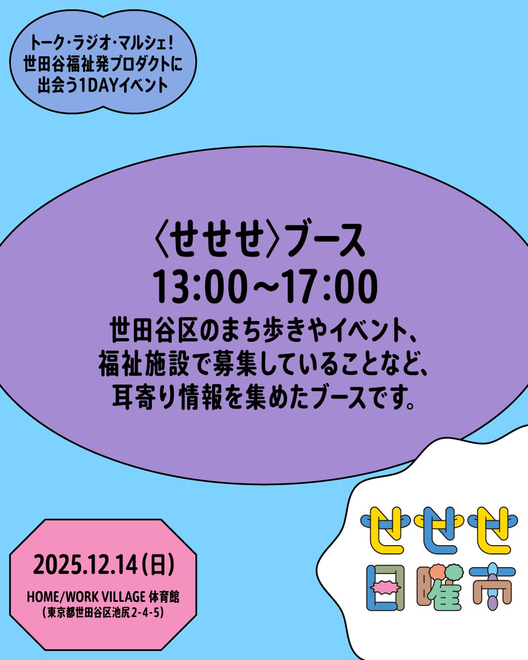 ・イベント名:せせせ日曜市〜トーク・ラジオ・マルシェ!世田谷福祉発プロダクトに出会う1DAYイベント〜