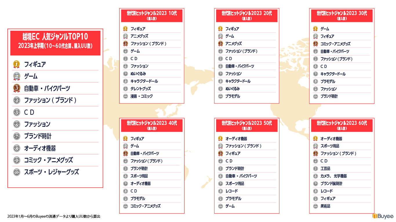 2023年上半期越境EC人気ジャンルTOP10と世代別人気ジャンルTOP10
