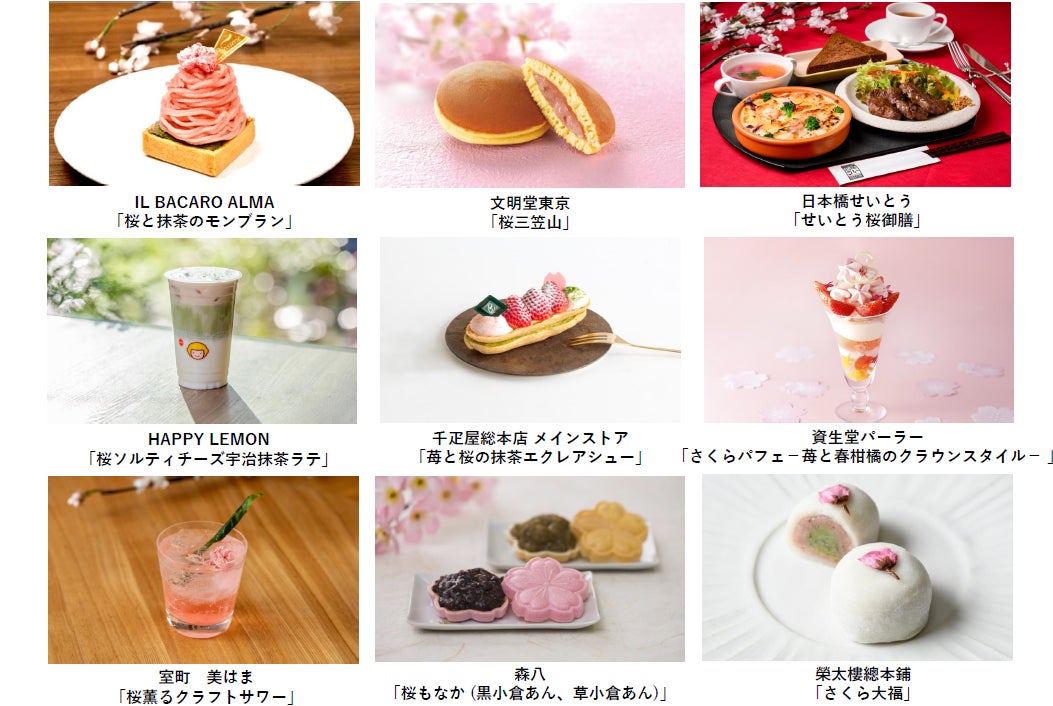 日本橋エリアの約200店舗が“桜”をテーマにした、この春限定のメニューを展開します。こころも満たすスイーツから、お弁当、軽食、グッズまで、見て楽しい、味わっても楽しい春の品々が揃いました。