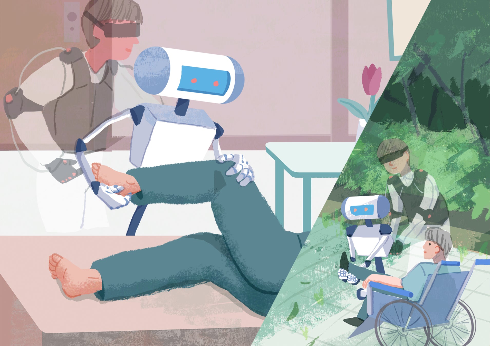 (左︓リハビリ施術のリモート化、中央︓危険な場所での作業のリモート化、右︓家事のリモート化)