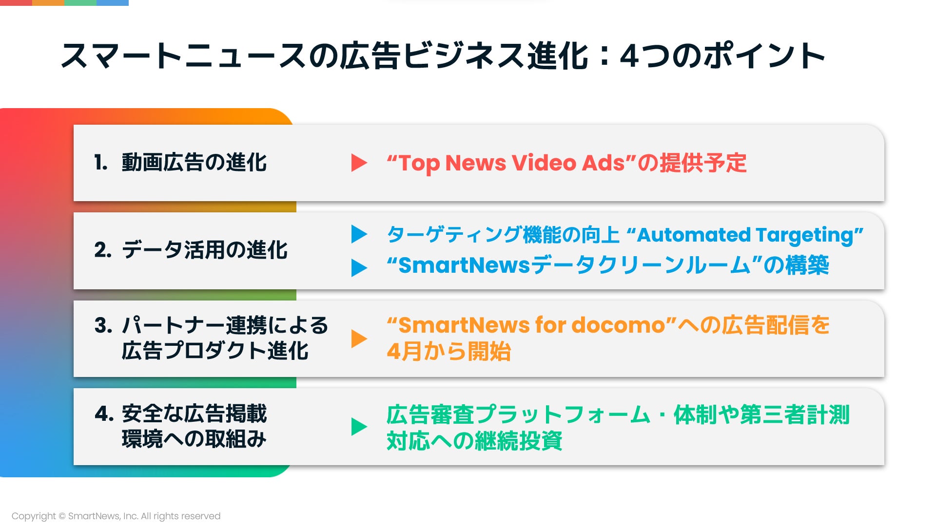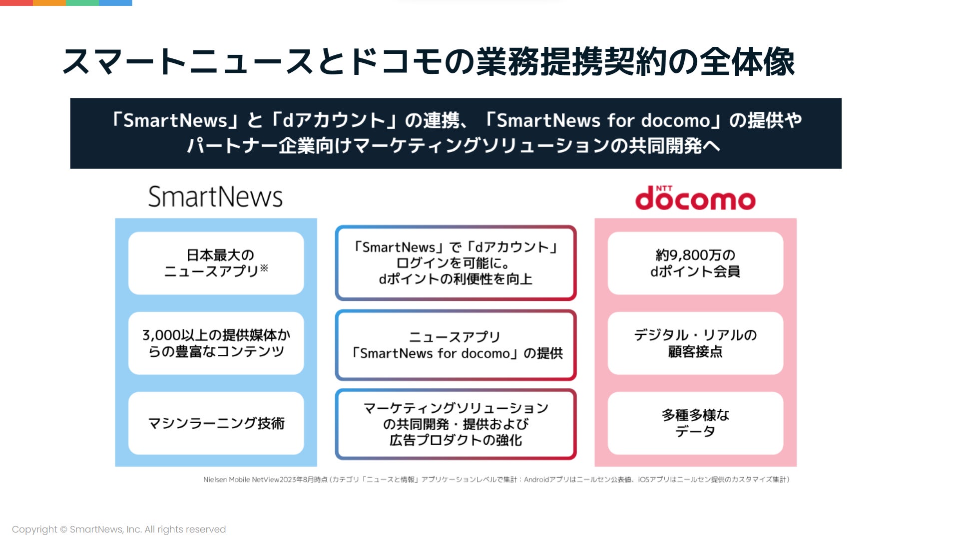 スマートニュースは昨年来、経営体制の強化や事業・サービスの拡大に積極的に取り組んでいます。2023年11月には株式会社NTTドコモ(以下ドコモ)と業務提携を結び、さらなる広告プロダクトの成長を共同で推進していく予定です。
