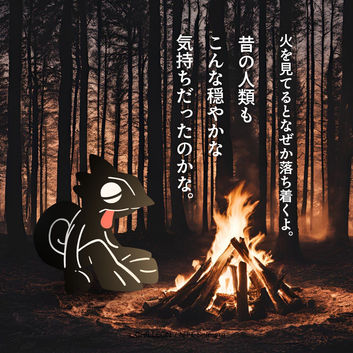 ストレスからの解放を目指し、チル(サウナ、キャンプ)を楽しむカメレオンのキャラクターです。