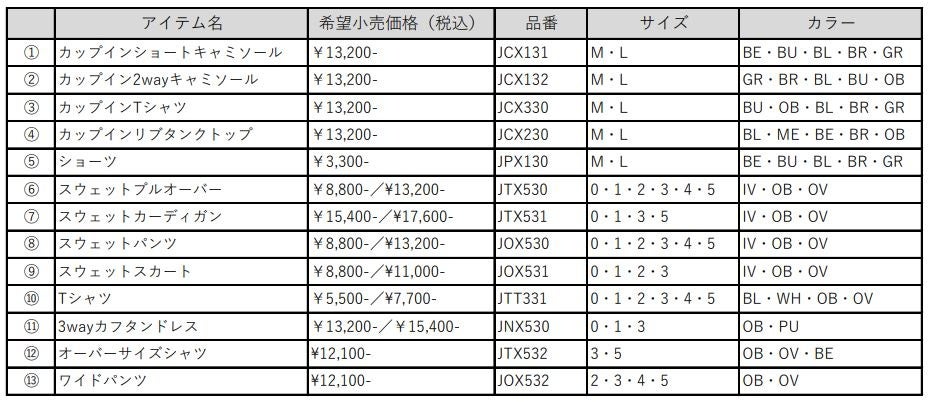 <ウェアコレクション>画像:左から⑫・⑬、⑦・⑥・⑨、⑫・⑩・⑬、⑥・⑦・⑧を着用