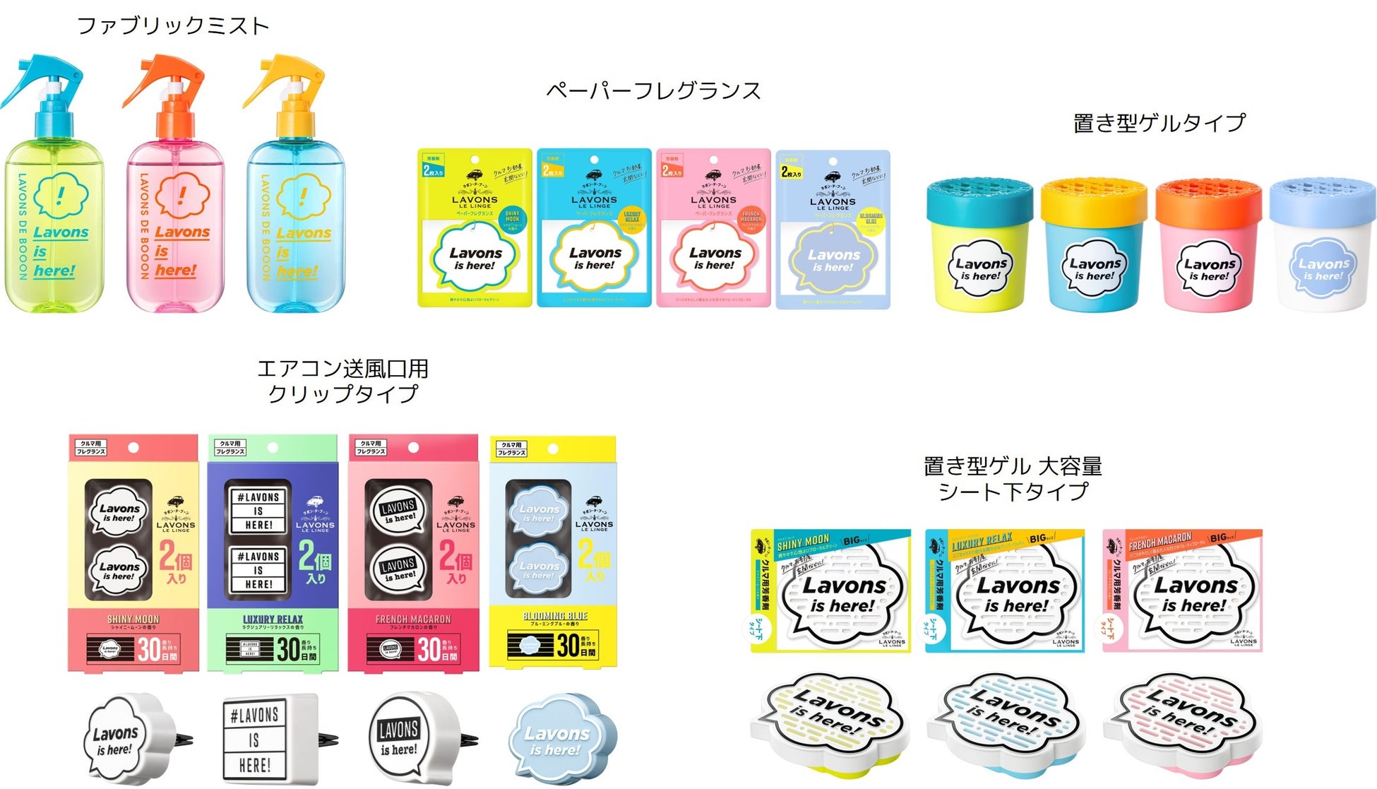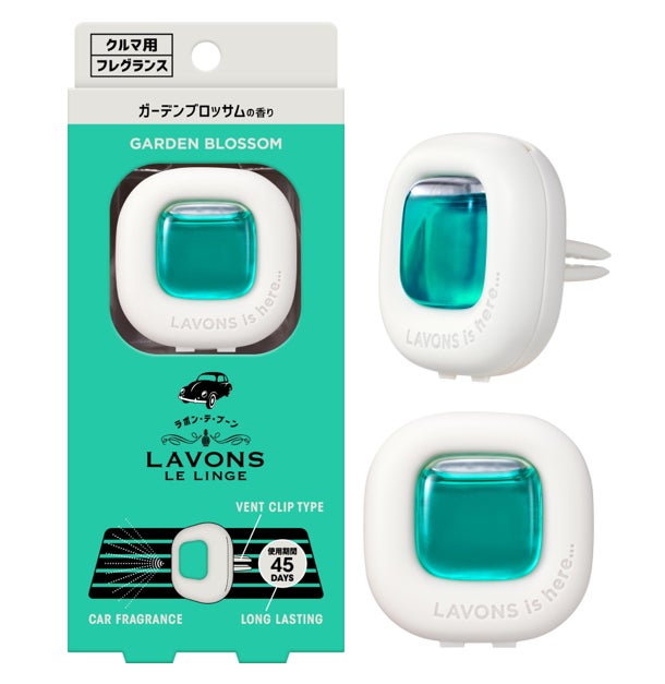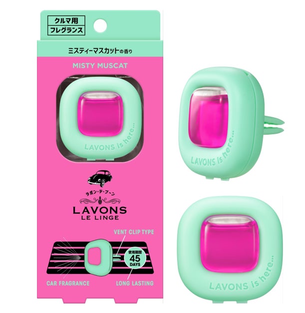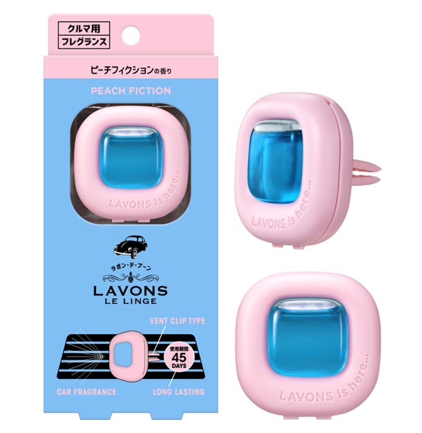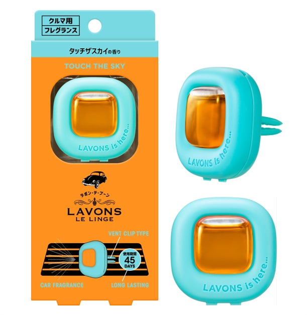 ラボンでは初となるクルマ用の新たな香りが、エアコンクリップタイプ型で登場します。ポップなカラーのパッケージと豊かに広がる香りで、車内を楽しくて心地よい空間に。香りは、タッチザスカイ、ミスティマスカット、ピーチフィクション、ガーデンブロッサムの4つのフレグランスをご用意しました。