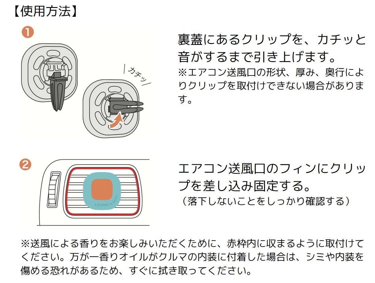 エアコンクリップ型よりも香りの持続期間がパワーアップし、約1~1.5ヶ月間、心地よい上品な香りが続きます。