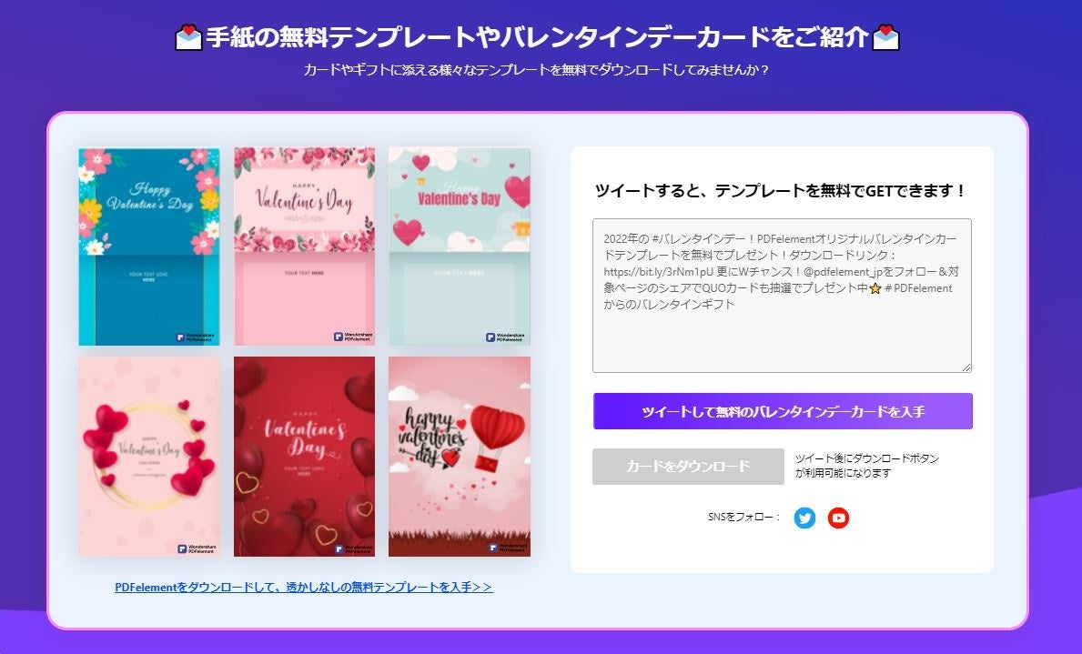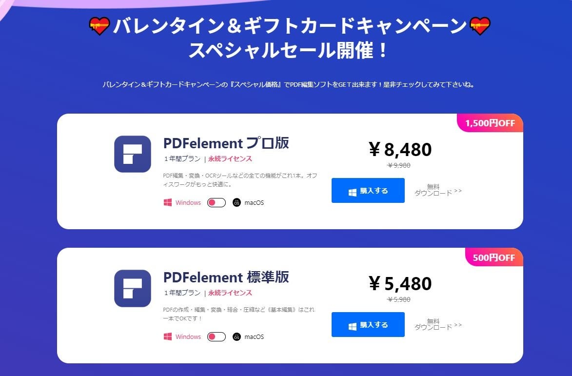 「PDFエレメント」がバレンタイン&ギフトカードキャンペーンを開始!「無料テンプレート」や「オリジナルQUOカードプレゼント」「特別割引コーナー」等様々なプレゼントをご用意致しました。