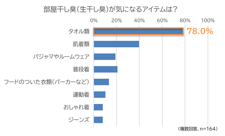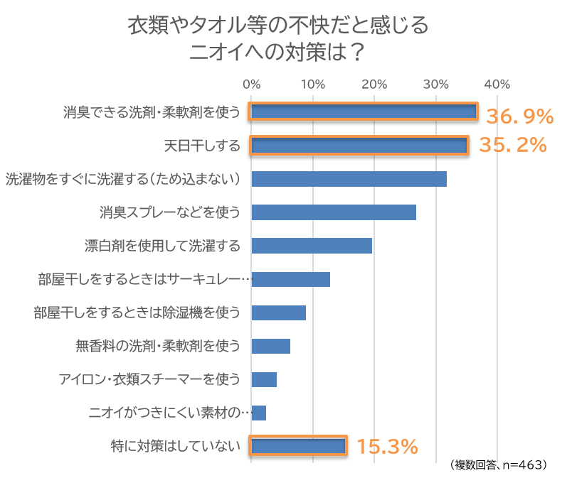 ・不快と感じるニオイも「部屋干し臭(生乾き臭)」が約8割。