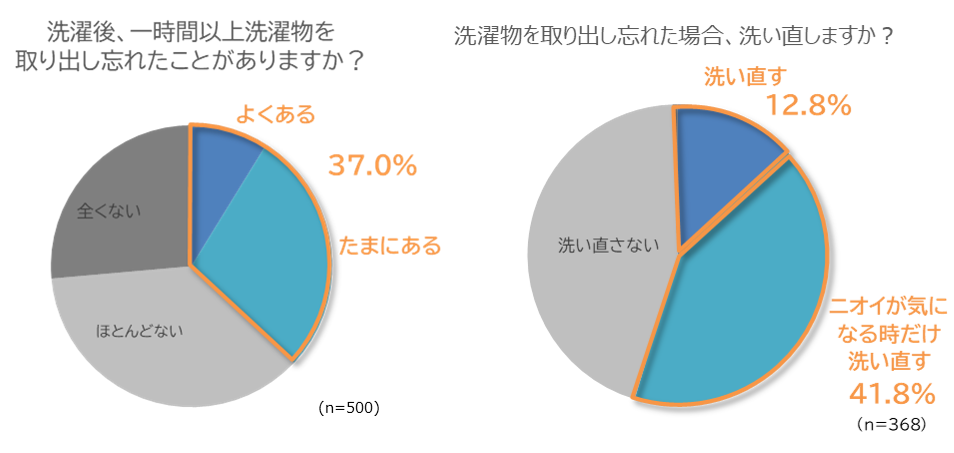 ■毎日の洗濯実態:1時間以上洗濯物を取り出し忘れた経験がある人は3人に1人以上