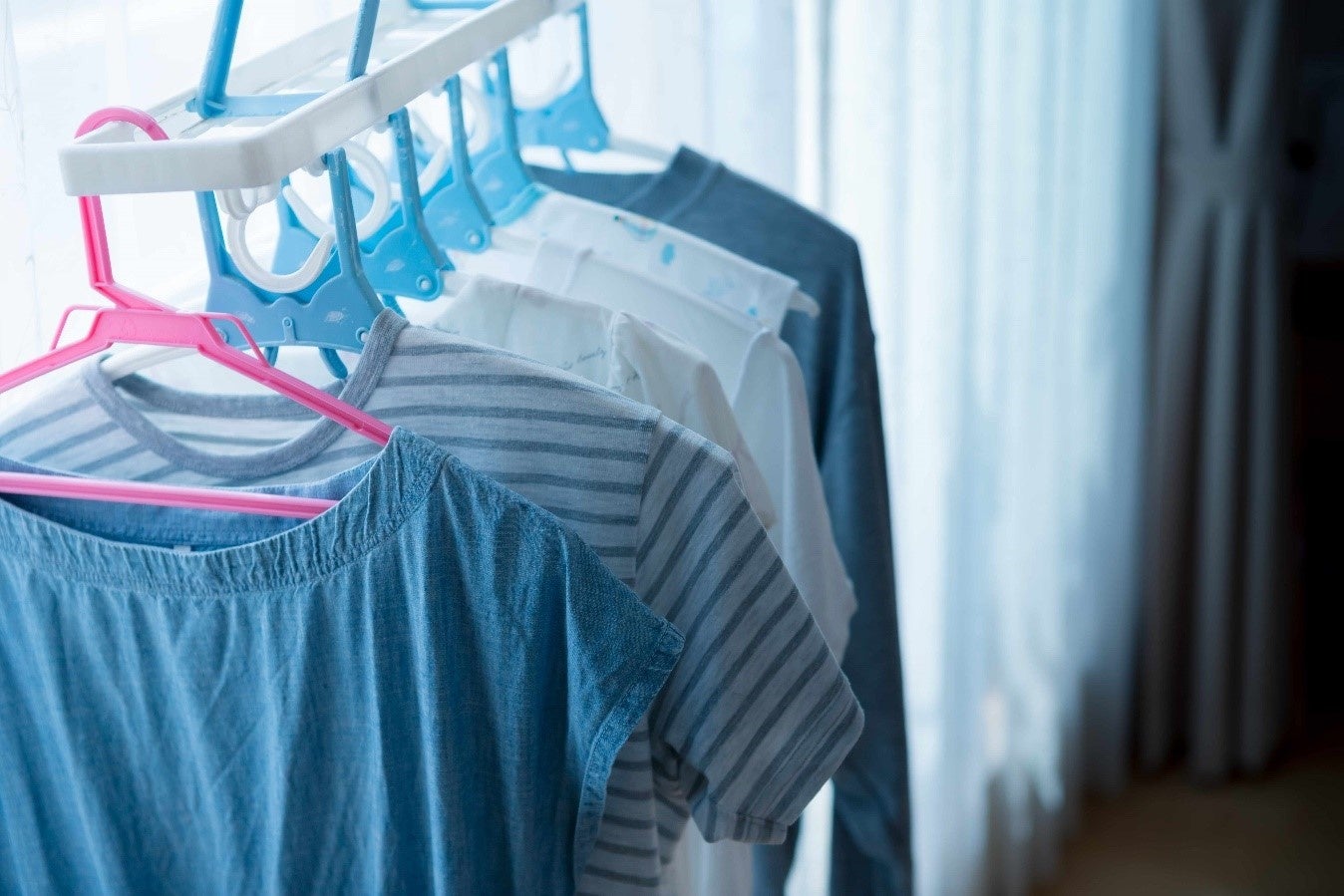 乾かす時は、風の当たりが大切です。調査からもわかったように、梅雨時期は部屋干しをされる方が多いです。部屋干しのメリットとしては、花粉やPM2.5などがつかない、紫外線によって生地が傷むのを防げる、天候に左右されないといった点が挙げられます。
