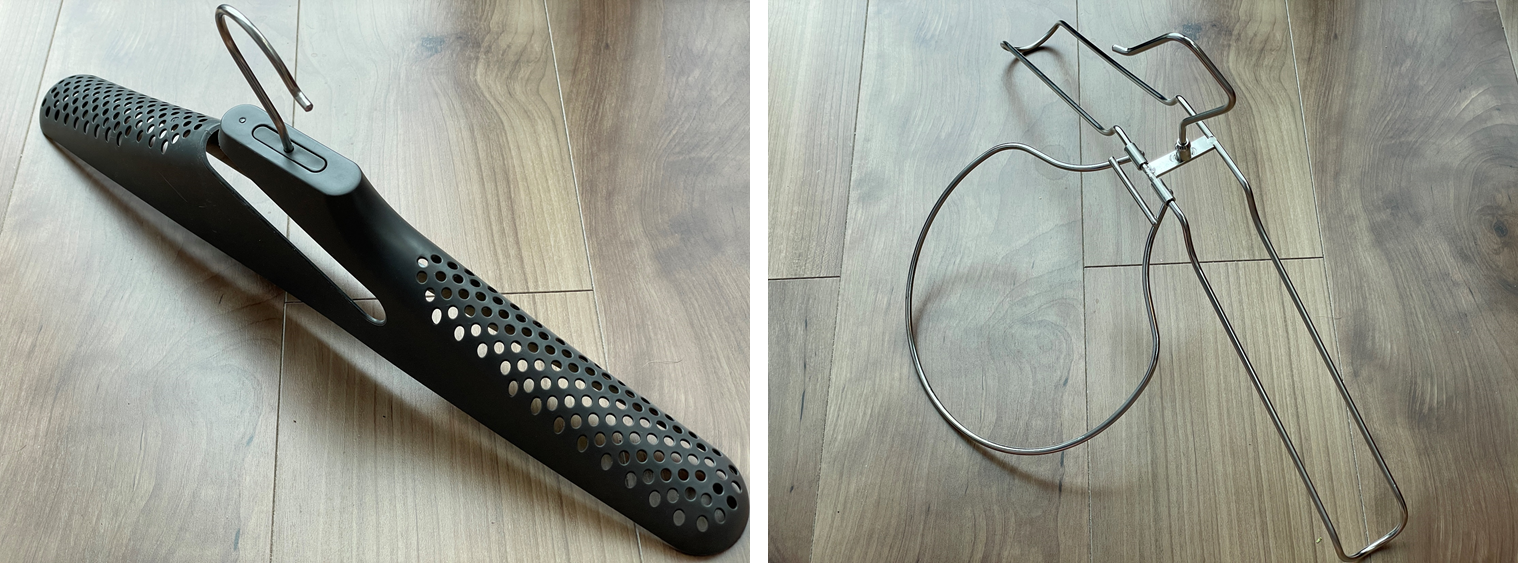 (写真は穴が開いているハンガーやフードがかけられるハンガー<私物>)