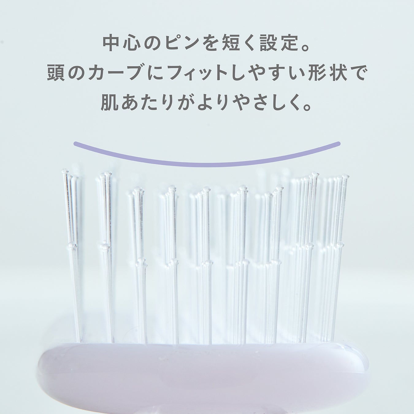 やわらかいピンと、硬めのピンの2種類を配列。長めのピンはソフトな肌あたりで、しなやかにブラッシングします。