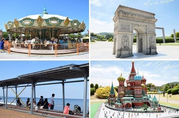 パークは、海を望む開放的なロケーションに広がり、さまざまなアトラクションや体験が楽しめます。なかでも、世界の名所18カ所を25分の1サイズで再現した「ミニチュアワールド」や、海を一望できる「海の見える足湯」は、入場料だけで楽しめることから人気のエリアです。