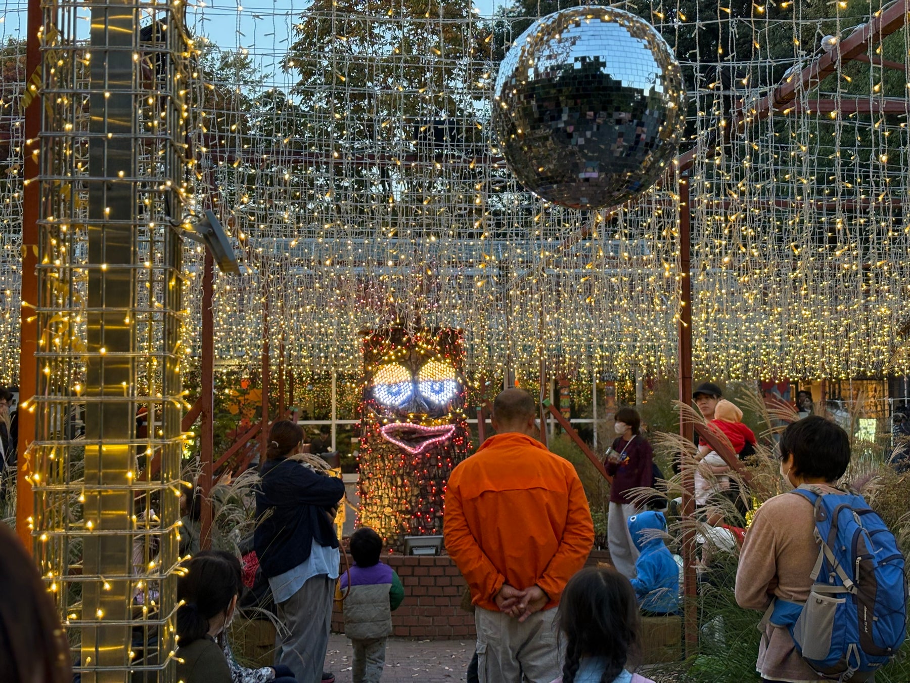 「中央口エリア」において、ライトアップ&イルミネーションイベント「光と森のstory」の第2章として、「紅葉見ナイト」を開催中です。会場内では約55万球のイルミネーションやカラーライトアップイベントをはじめ、第1章「森のハロウィンナイト」以降の新たな装飾として「草月流インスタレーション」が登場します。最大のみどころの一つは「カエデ園」周辺に植栽している約20種類・約500本のカエデの紅葉。赤や黄、オレンジのほかにピンク色に近い色に紅葉するカエデを、暖色を基調とした電球でライトアップします。日中に見る紅葉とは一味違った、夜間の幻想的な紅葉もお楽しみください。