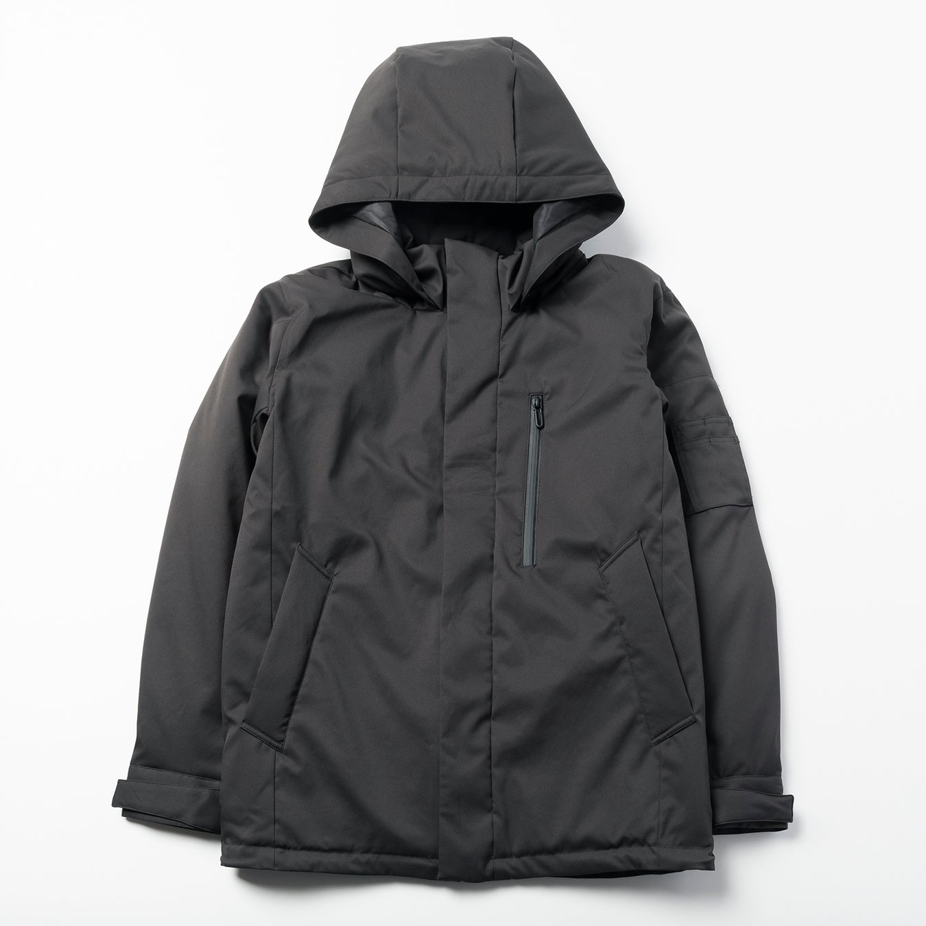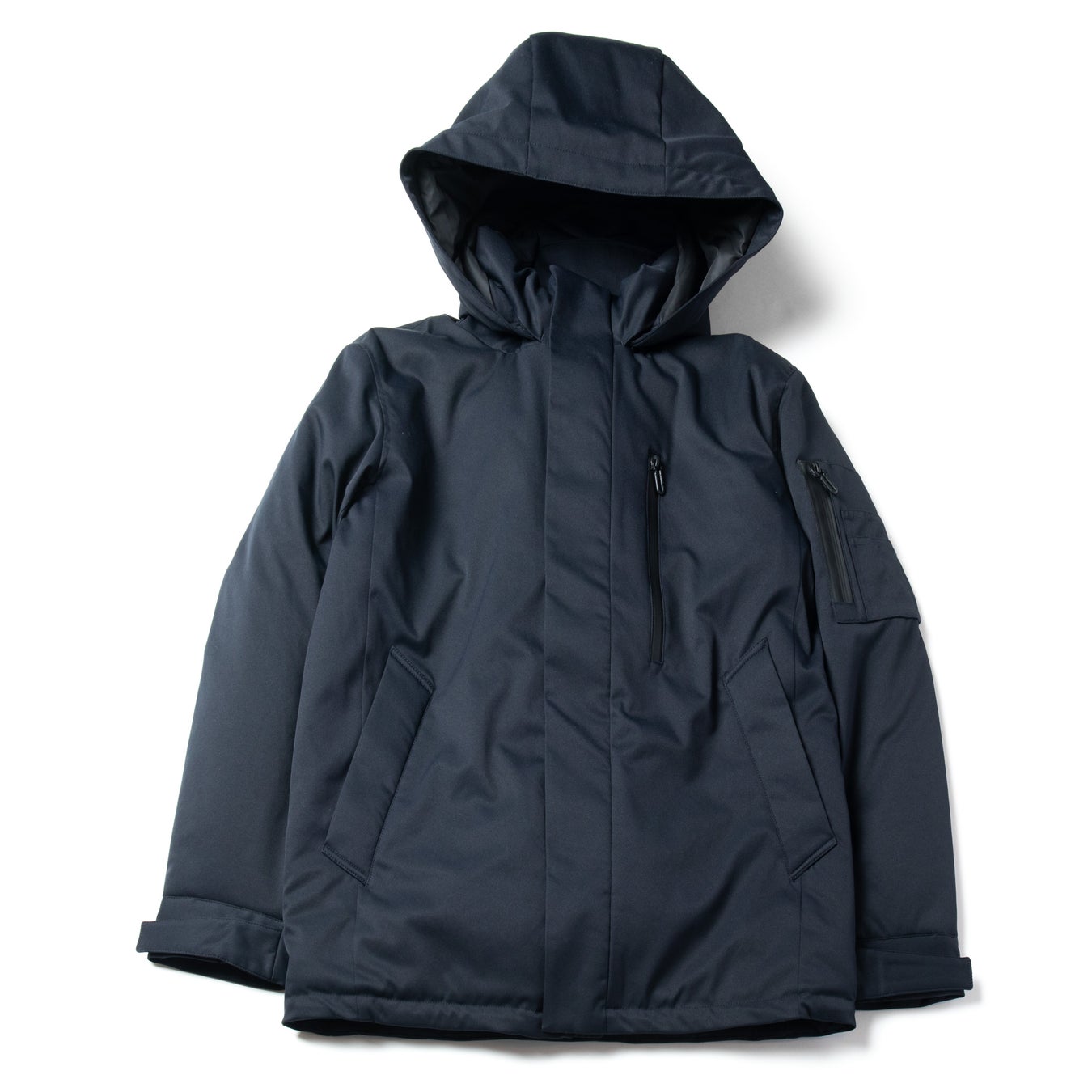 特徴:WWSの中で最も中綿を使用した防寒アウター。フロントは止水ファスナーとスナップボタンの二重仕様で、冷たい風をしっかりブロック。フードは取り外し可能で、ポケット内側に遠赤外線効果のある生地を使用し、ポケットに手を入れることでハンドウォーマーとしても利用可能。外側に4つ、内側に4つポケットがあり収納力にも優れています。