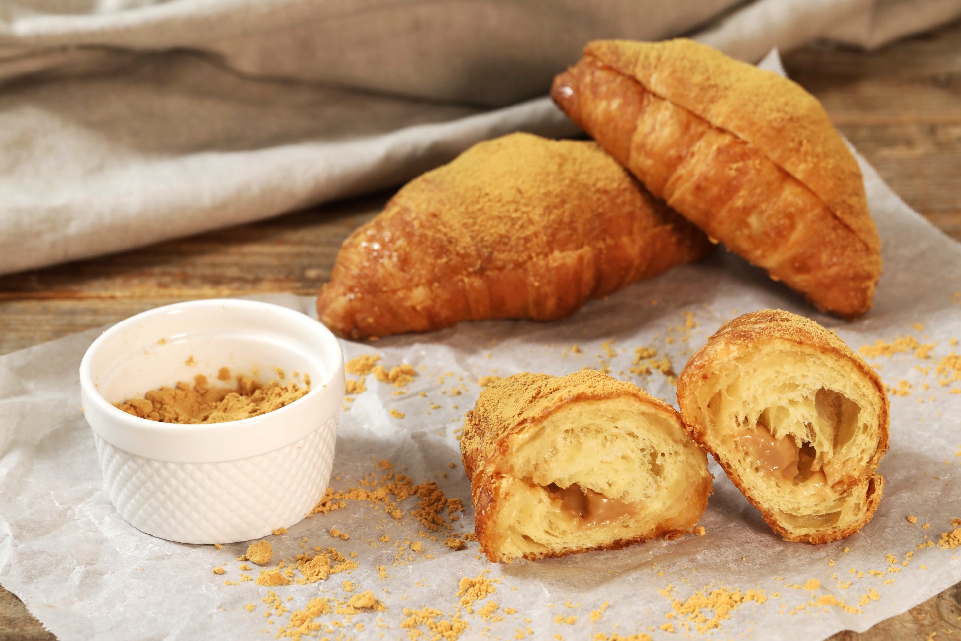 フランス産発酵バターを使用したコクのある味わいのクロワッサンに、キャラメルのフラワーペーストを挟み、仕上げにキャラメルパウダーを振りかけました。
