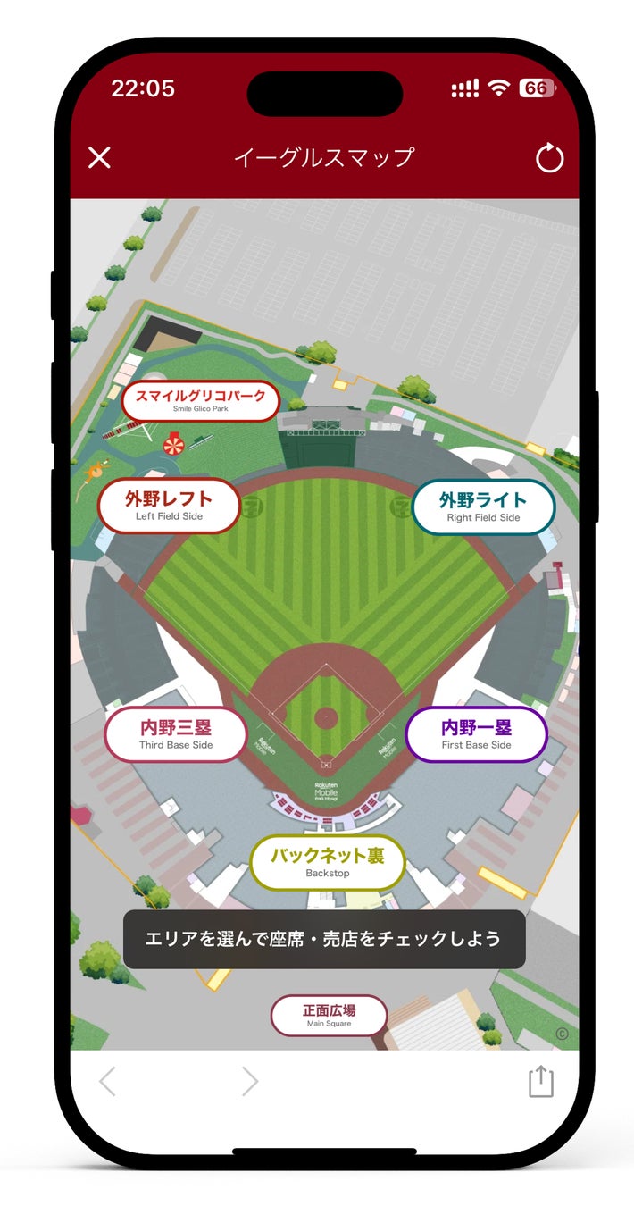 【楽天イーグルス】「楽天イーグルス公式スマホアプリ」試合観戦をより快適に!新機能『イーグルスマップ』が登場!