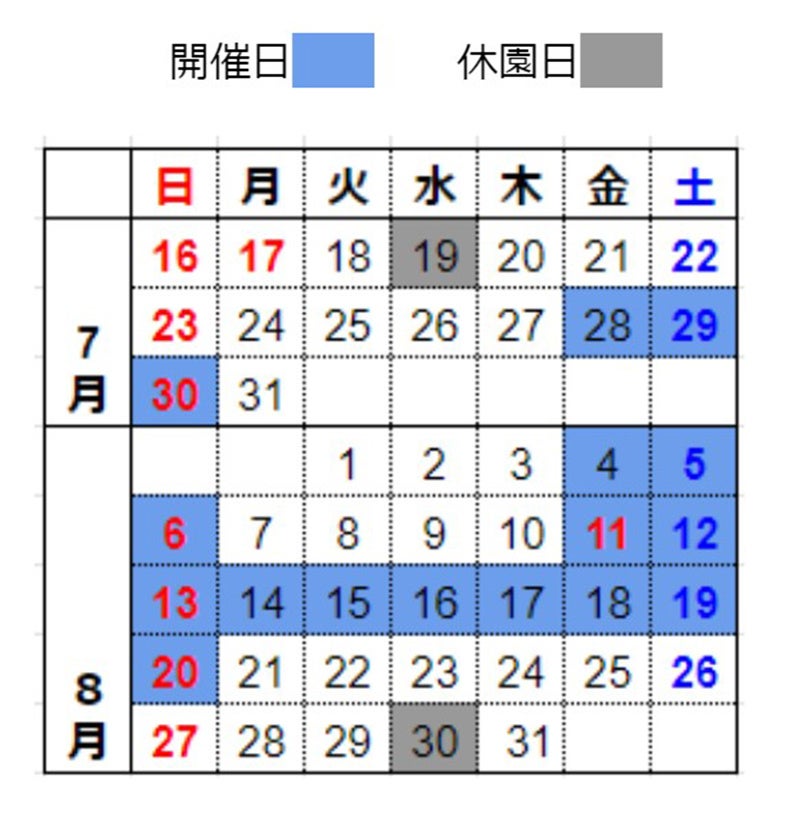 2023年7⽉28⽇(金)〜8⽉20⽇(日)の期間中16⽇間開催
