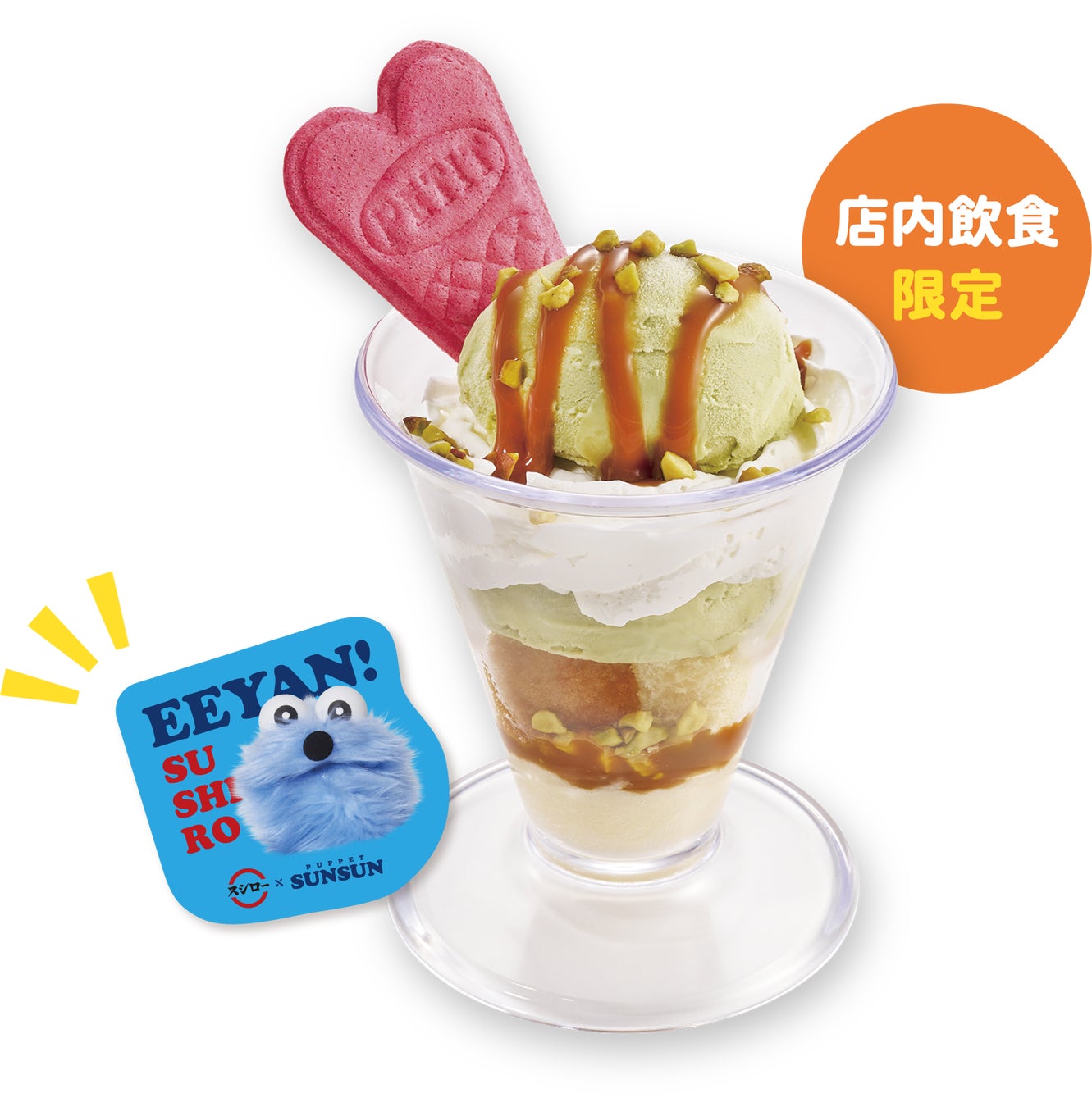 ■商品名:ピスタチオとキャラメルソースパフェ パペットスンスンコラボ限定ステッカー付き