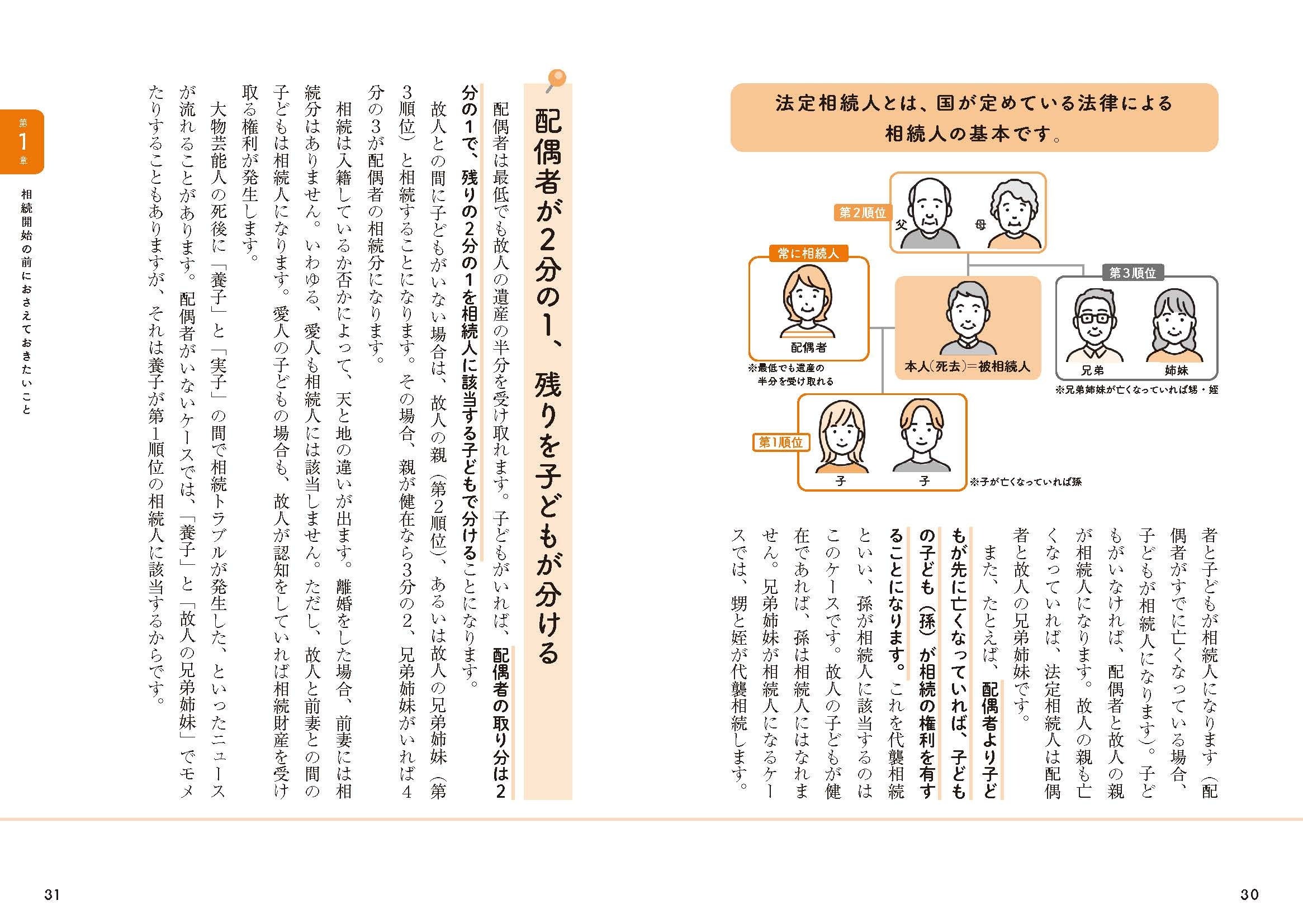 相続は、誰もが突然「当事者」になりうるもの。文中ではわかりやすい図を使って説明しているので、予備知識なしでも相続の基本を理解することができます。