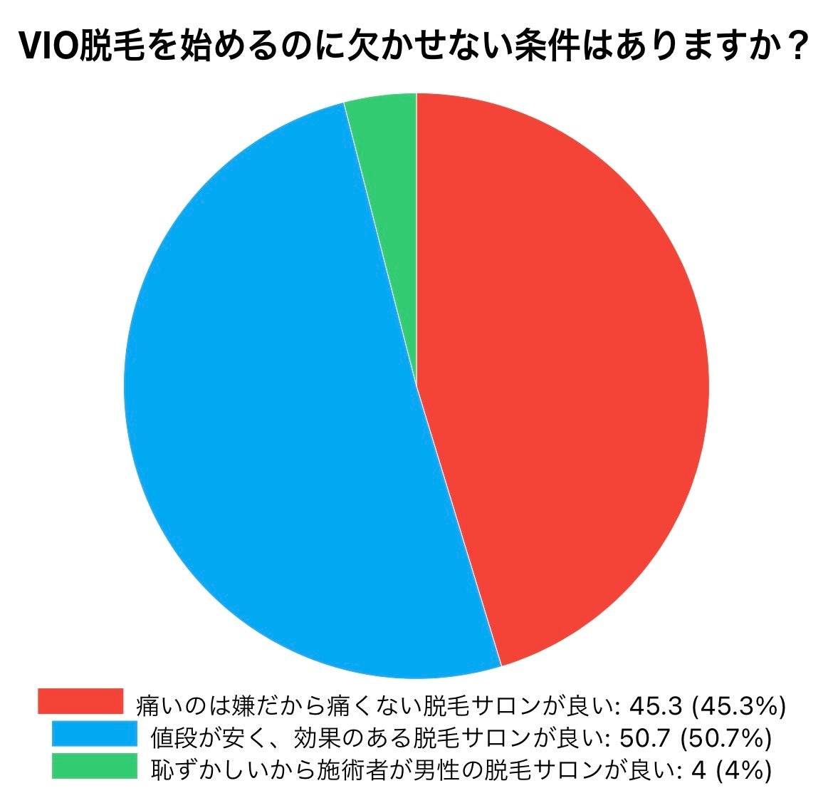 VIO脱毛を始めた方は、デリケート部分の為、『痛み』や『値段』を気にする方が多い結果となりました。