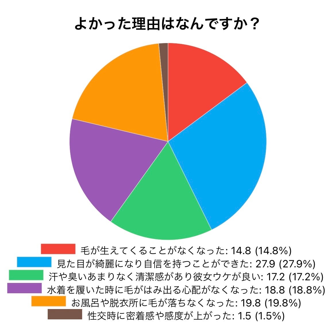 その理由には、「清潔感が保つことができ、自分で処理することがない為、痒みなく日常生活を過ごせるから。」