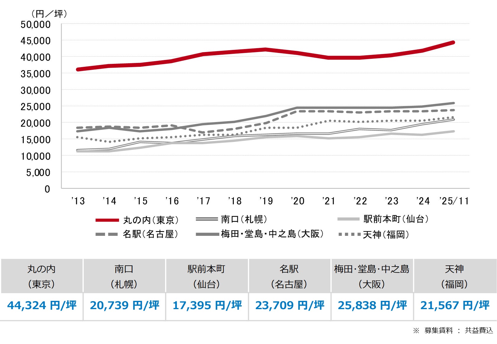 <募集賃料の推移(6大都市 大規模ビル・主要駅前地区)>