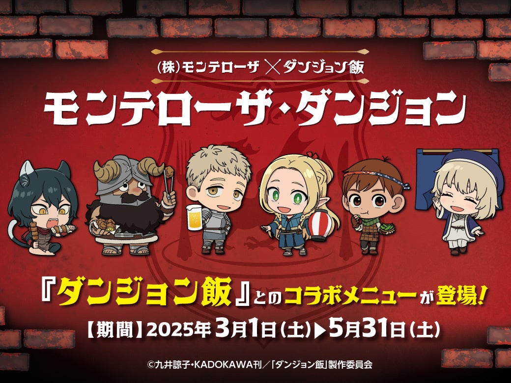 株式会社モンテローザ(本社:東京都杉並区、代表取締役:大神輝博)は、2025年3月1日から5月31日までの期間、人気のTVアニメ『ダンジョン飯』とのコラボ企画「モンテローザ・ダンジョン」を当社グループの約790店舗(※1)で開催します。