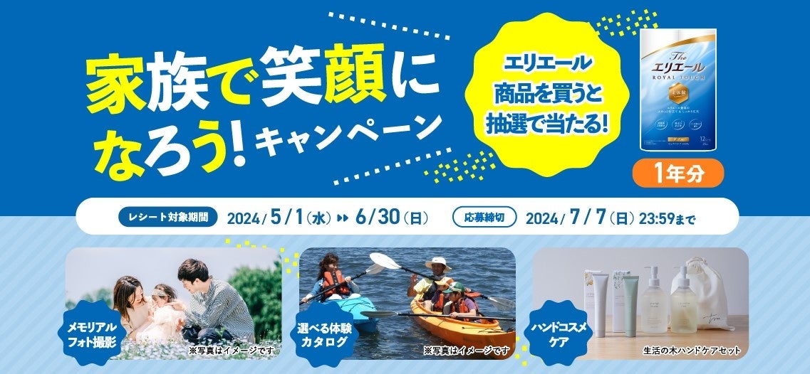 エリエール商品の購入で、選べる体験ギフトなどが合計1,000名さまに当たる!「家族で笑顔になろう!キャンペーン」5月1日(水)~ 6月30日(日)実施