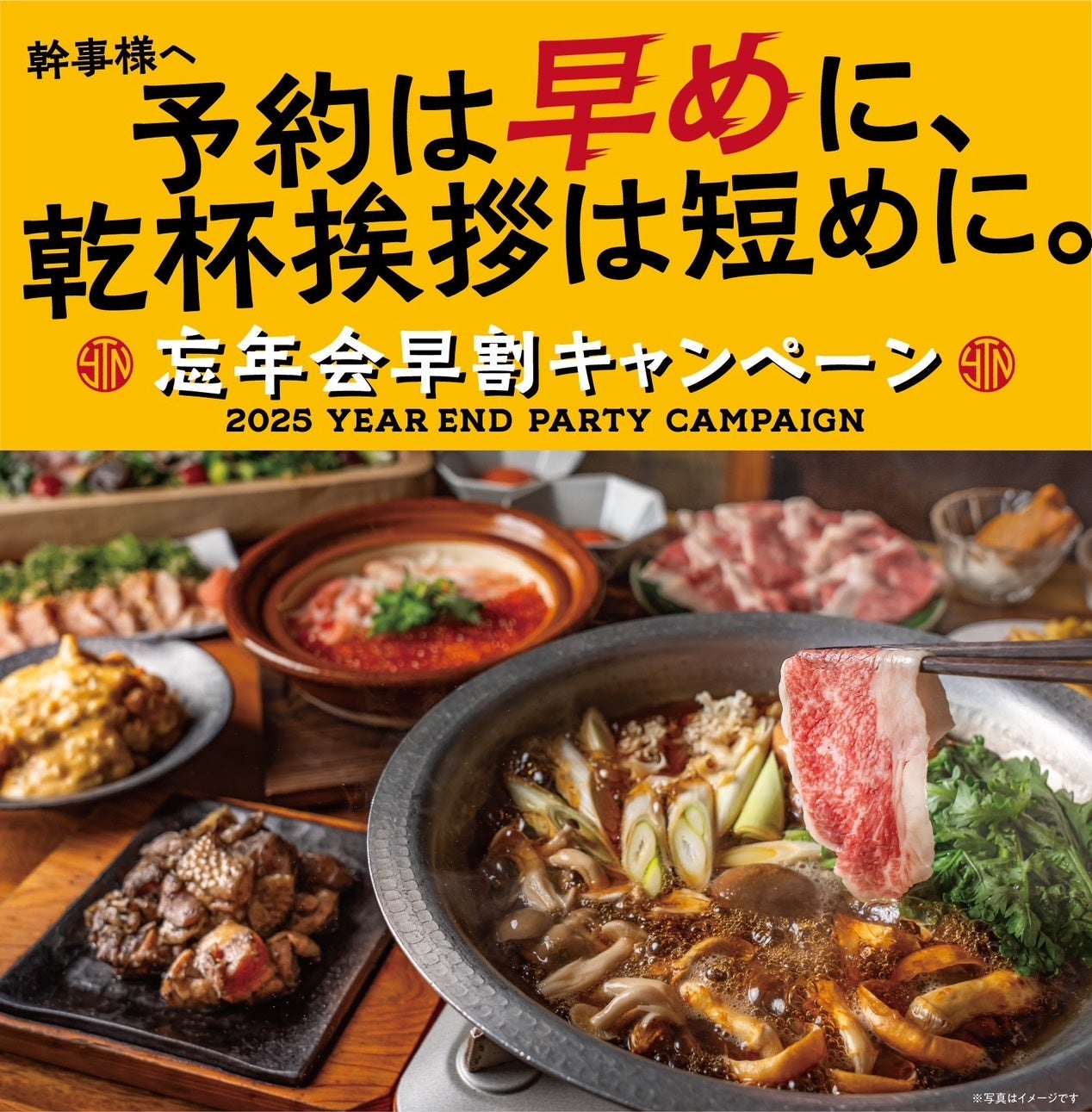 株式会社エー・ピーホールディングス(本社:東京都豊島区、代表取締役会長 兼 社長:米山久)が運営する「炭火焼鳥 塚田農場」の各店、および「炭火焼鳥 塚田農場 THE 2nd」では、2025年10月6日(月)より、2025年の忘年会予約を開始します。