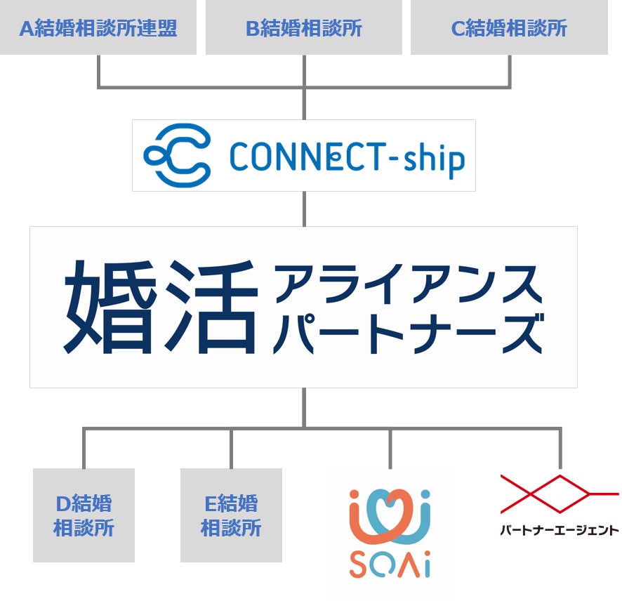 そこでこの度、当社婚活サービスで培った知見やノウハウを活用した運営支援とパートナーエージェントを含む加盟企業の会員様の紹介を可能とし、また「CONNECT-ship」の利用も可能となる結婚相談所連盟「婚活アライアンスパートナーズ」を設立いたしました。今後は自社婚活サービスはもとより、パートナー企業との連携も強化し、日本により多くの成婚機会を創出し、日本全体の婚姻率上昇に寄与してまいります。