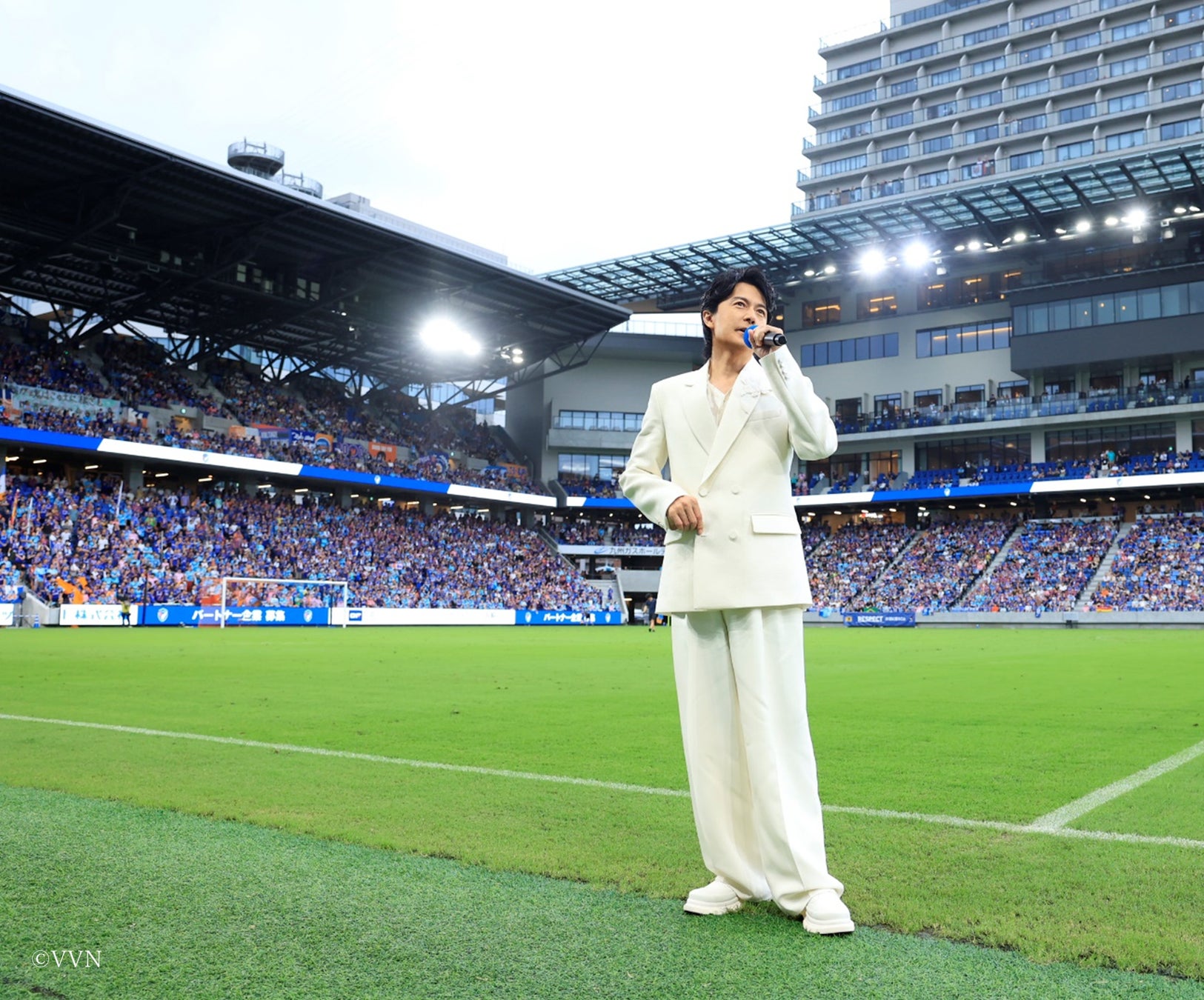 その感動が消えやらぬ中、ピッチ上に福山さんご本人がサプライズで登場。長崎スタジアムシティのクリエイティブプロデューサーでもある福山さんの登場に、スタジアムは驚きと大きな歓声に包まれました。
