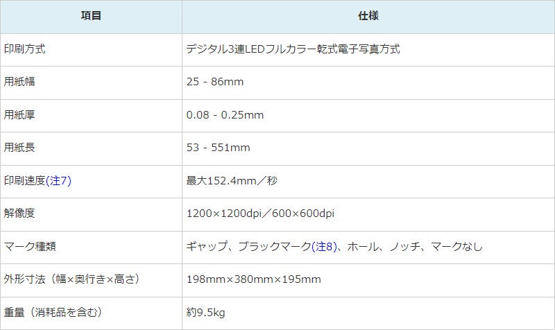 注7:用紙のサイズ、厚さにより、印刷速度は変わります。連続印刷時にプリンター本体の温度調節や画質調整のため、動作が休止または遅くなる場合があります。印刷速度は温湿度条件によって遅くなることがあります。