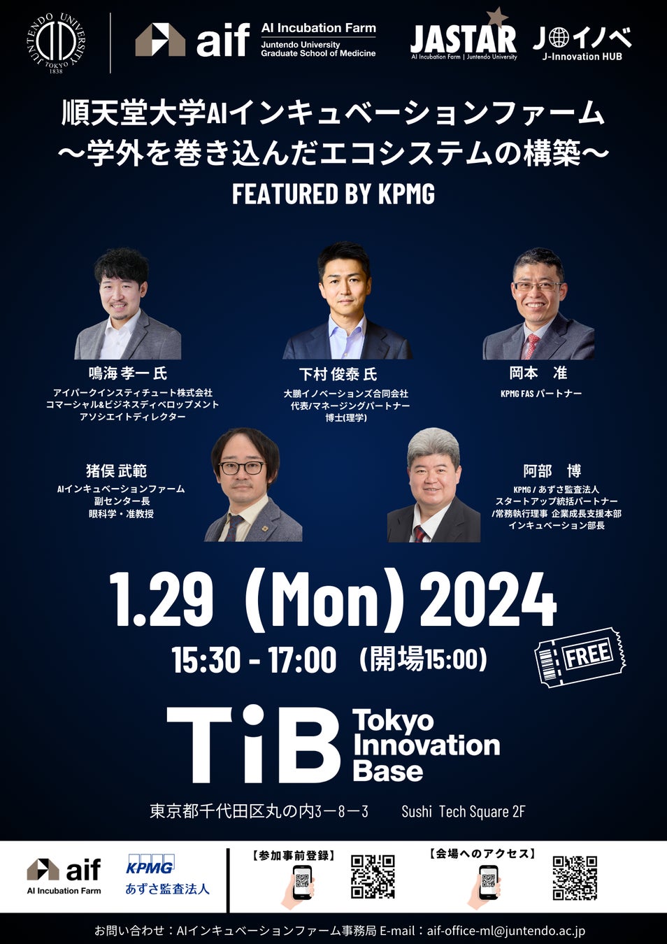 順天堂大学AIインキュベーションファームが、KPMGジャパンとの共催イベント第3弾「学外を巻き込んだエコシステムの構築」を開催