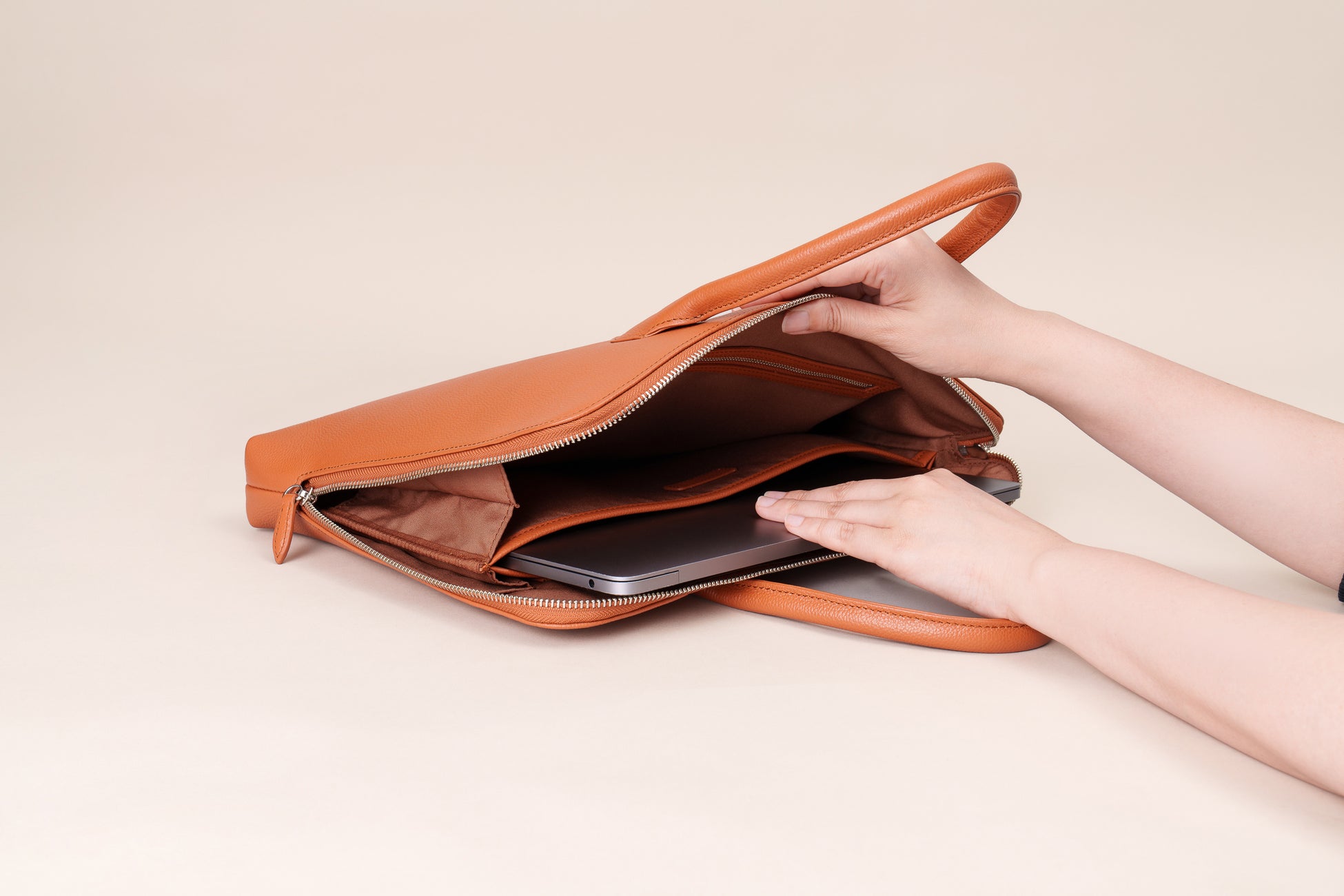 在宅・外出・カフェワークなど働く場所が自由になった今、ビジネスバッグに求められる役割も変わってきました。 「大容量より、身軽さを優先したい」「必要最低限の荷物でスマートに動きたい」働き方の変化に合わせて、ノートパソコンと周辺機器だけをコンパクトに収納できる、ミニマルで薄型のPCバッグが誕生しました。