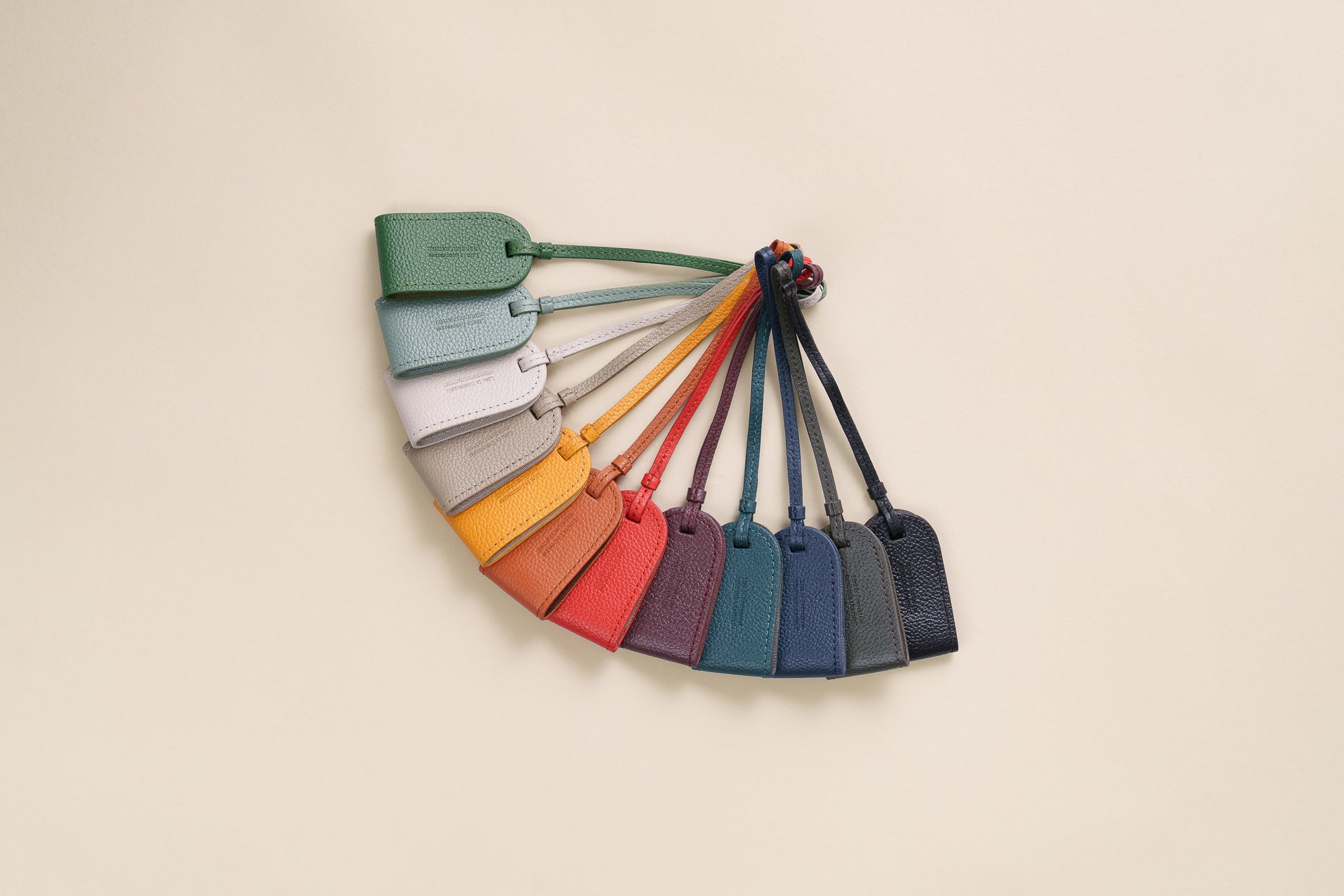 カラー展開は全12色。定番アイテムは、ビジネスバック、財布、名刺入れなどがある。