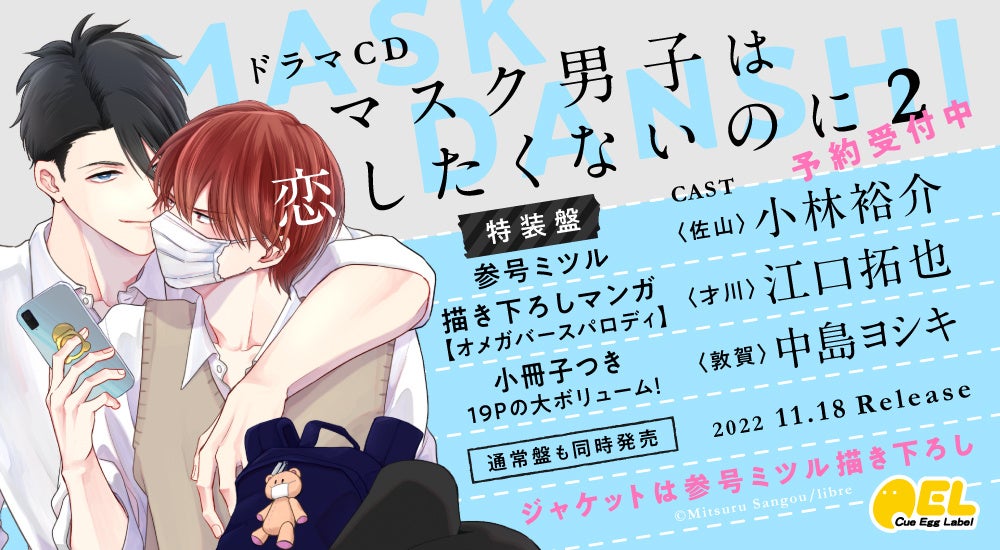 爆発的ヒット!リア充×マスク男子の青春系フェチBLのドラマCD「マスク男子は恋したくないのに」第2弾が2022年11月18日に発売予定!