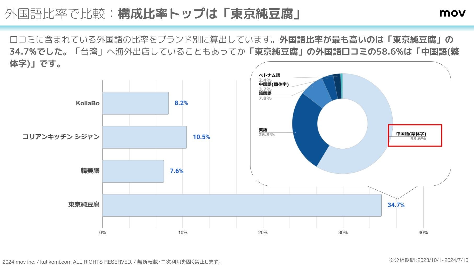 ■ 外国語比率トップは「東京純豆腐」で34.7%