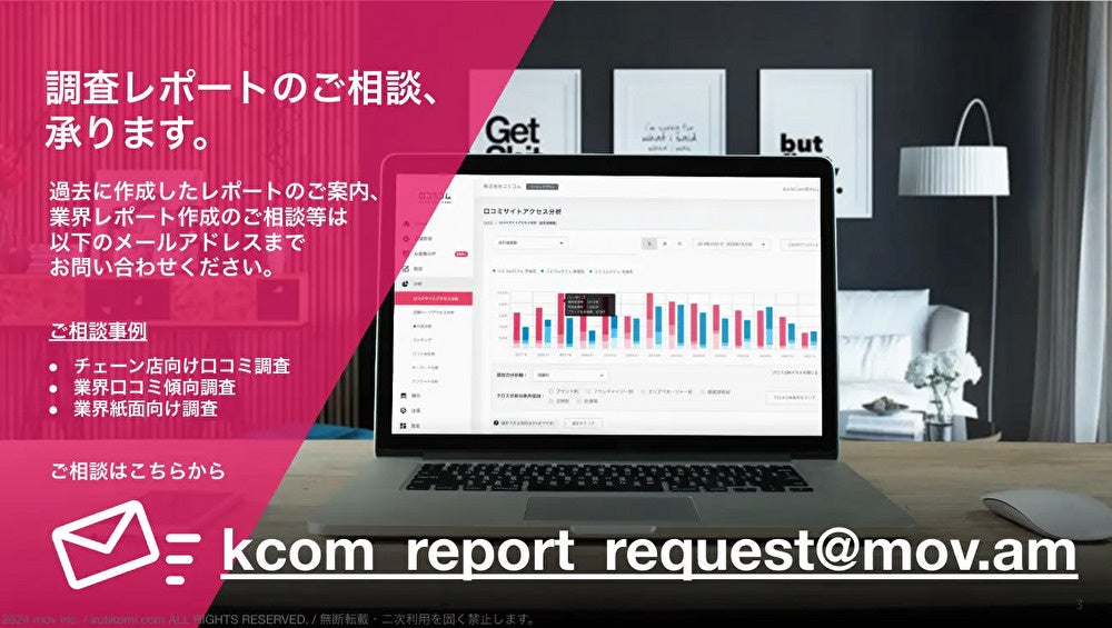口コミコムでは、口コミを横断して分析することで見えてくる「新しい発見」をご提案します。レポートは下記ページから無料でダウンロードできます。