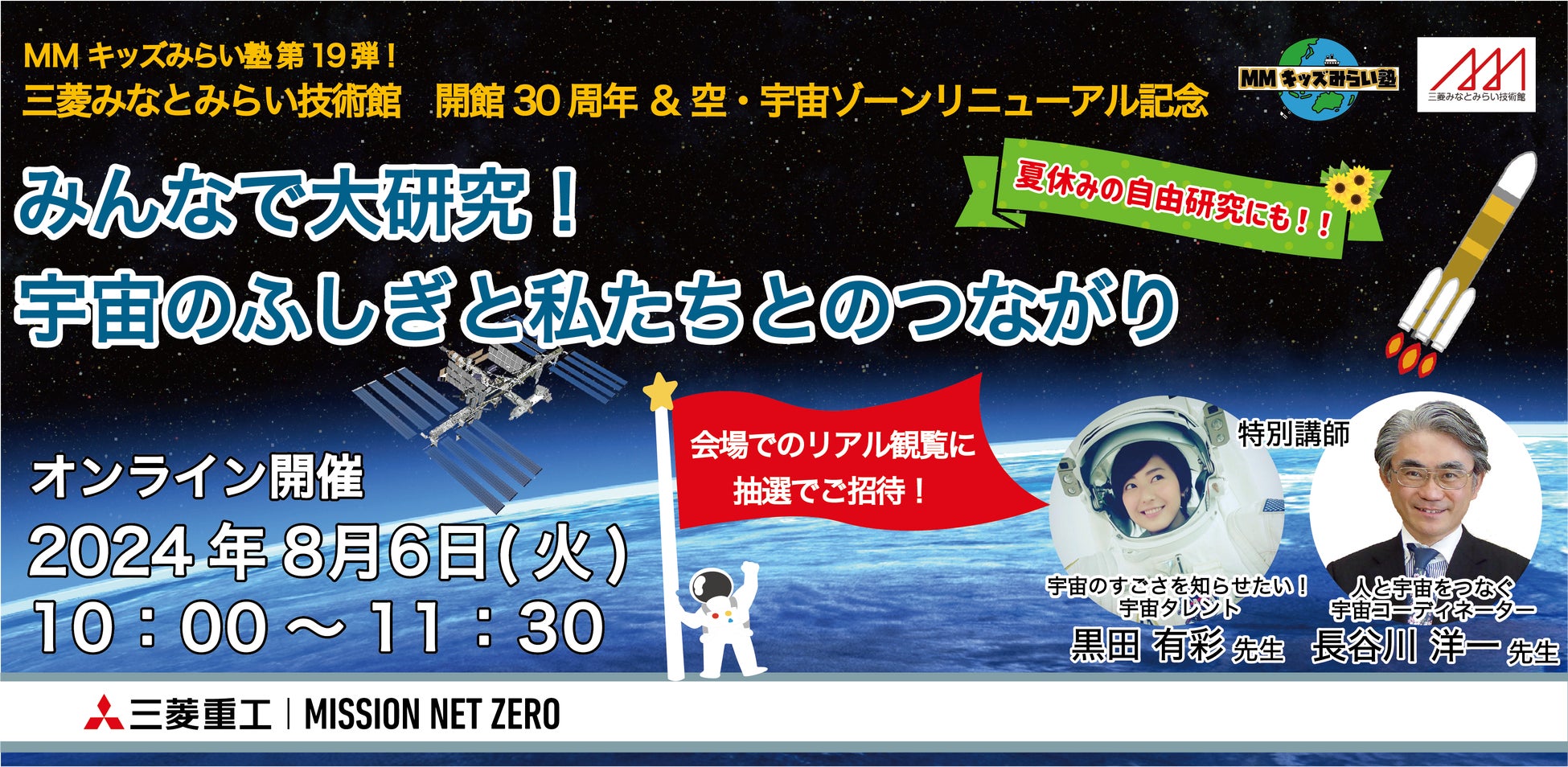 【三菱みなとみらい技術館オンラインイベント】8/6(火)「MMキッズみらい塾第19弾! みんなで大研究!宇宙のふしぎと私たちとのつながり」開催のお知らせ