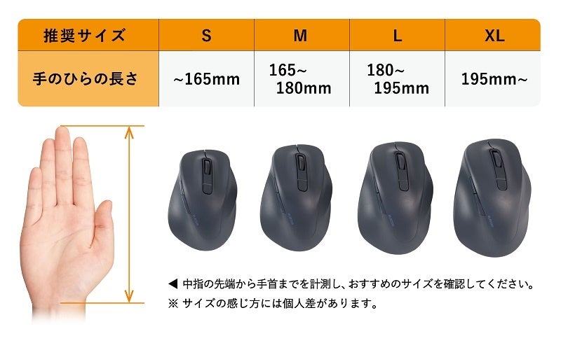 整形外科医との共同開発により、手首と指への負担を極限まで抑えた"握らないマウス"!“EX-G”マウス、右手モデルのL・XLを追加発売