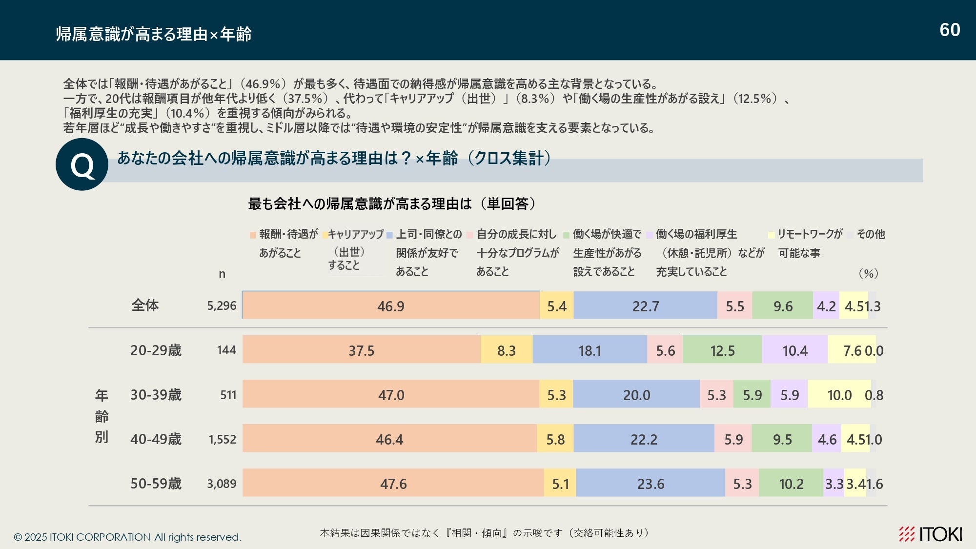 ・帰属意識を高める条件は「給与+関係性+環境」、20代は“成長と働きやすさ”をより重視