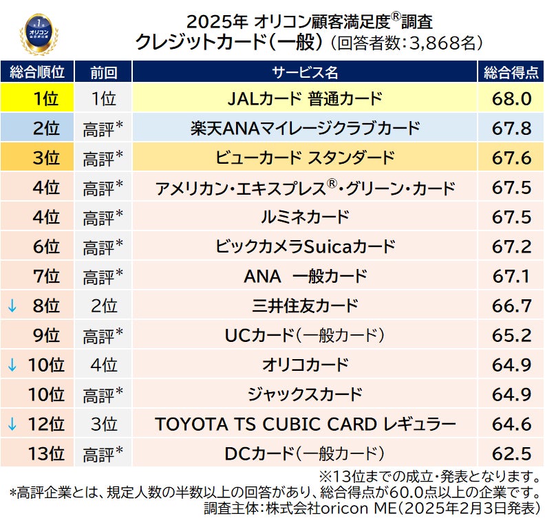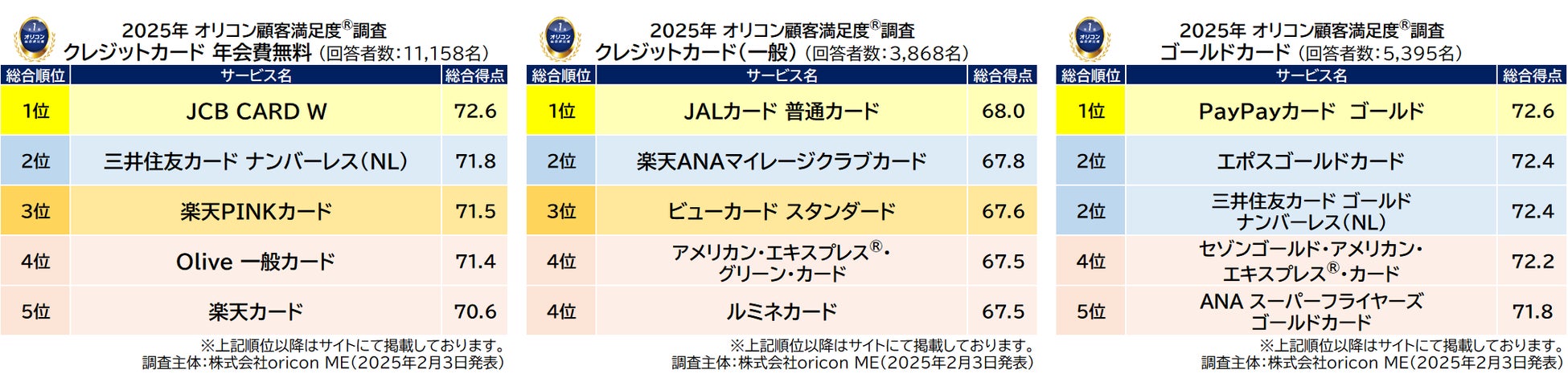 2025年 オリコン顧客満足度®調査 クレジットカード(一般)