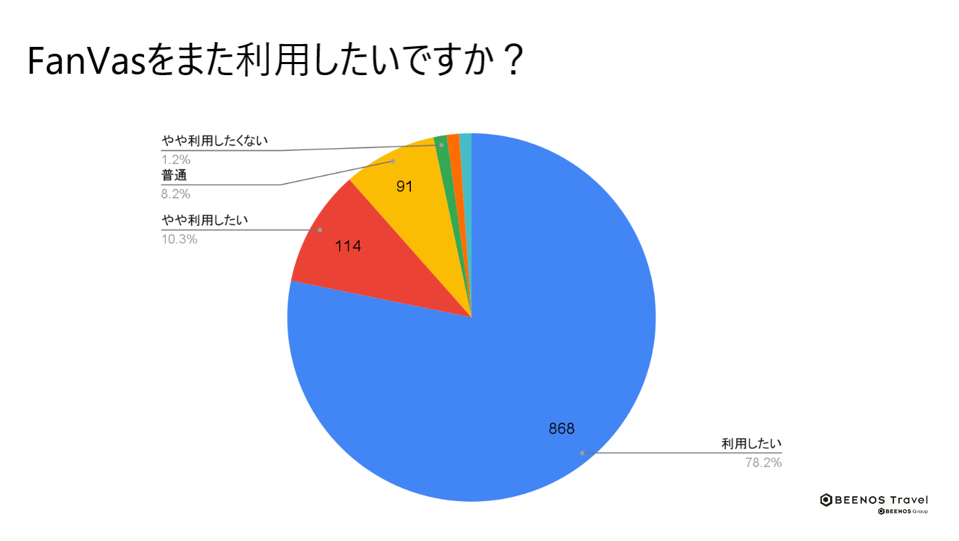 利用したお客様の約9割が「利用したい」と回答、「FanVas」利用者のアンケート