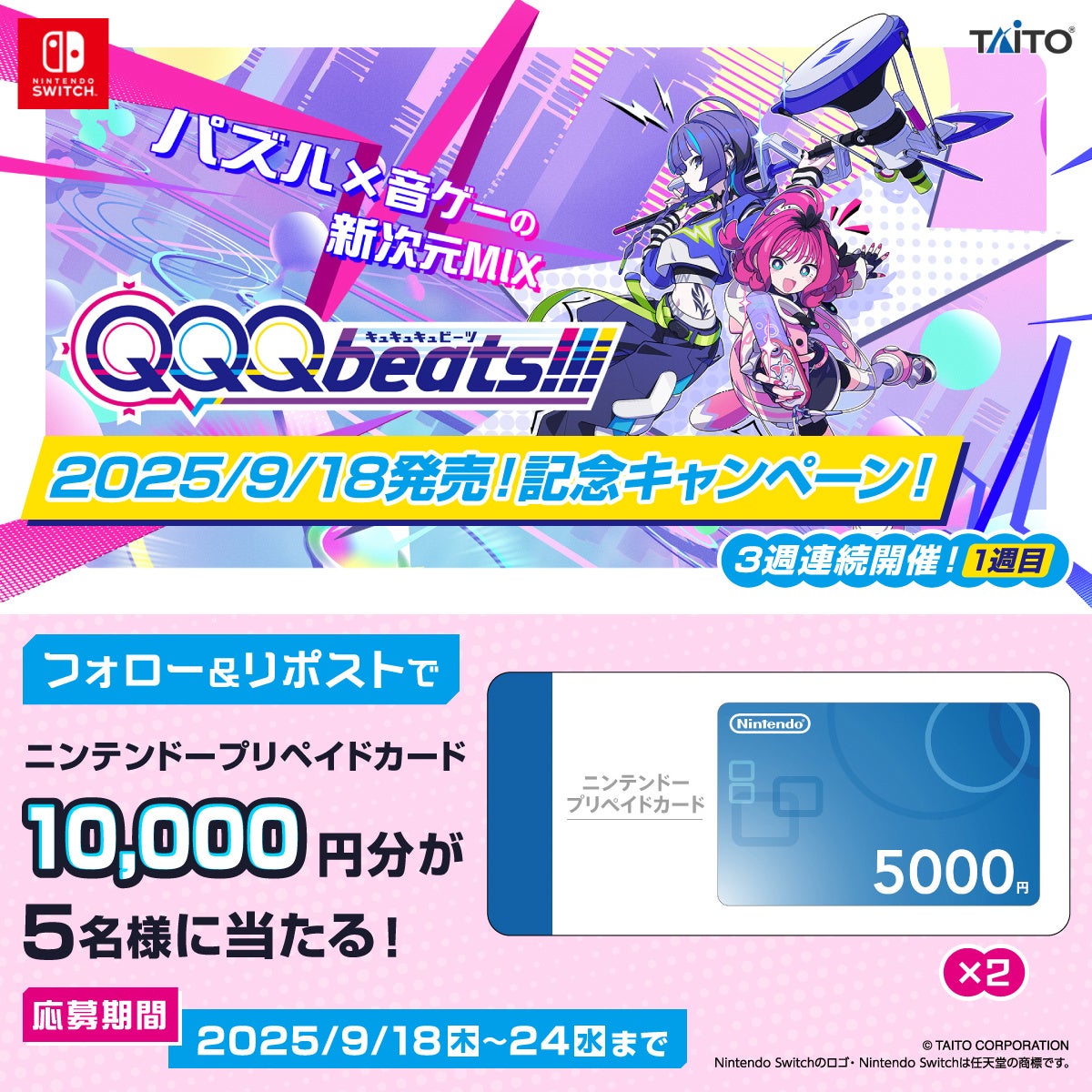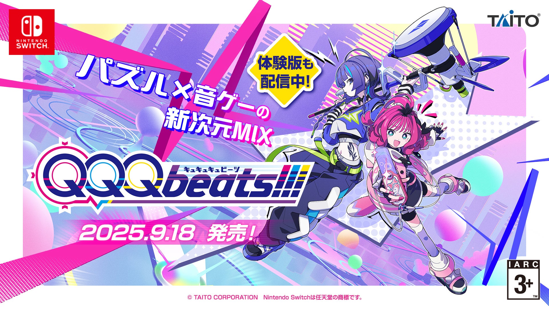 株式会社タイトー(本社:東京都新宿区、以下タイトー)は、Nintendo Switch™ダウンロード専用ソフト『QQQbeats!!!』(読み:キュキュキュビーツ)を、ニンテンドーeショップにて本日9月18日(木)に発売いたしました。また、同日より体験版の配信も開始しております。