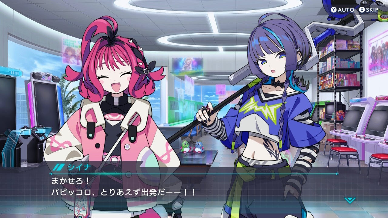 主人公は、ゲーム配信系インフルエンサーユニット「パピッコロ」のシイナとアメ。ある日の配信をきっかけに突然炎上し、謹慎となってしまいます。そんな彼女たちの謹慎明けの配信からストーリーは始まります。さまざまな舞台で奮闘しながら、仲間たちと笑い合い、時には悩みながらも前向きに成長していく2人の物語です。物語を進めると、登場キャラクターや楽曲が解放されます。