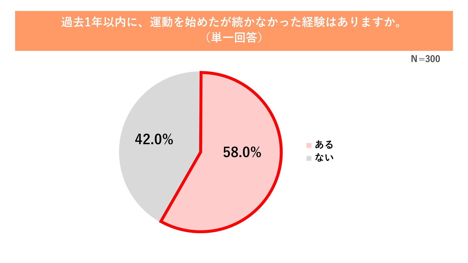 さらに深刻なのは、運動不足が単なる身体的な課題に留まらず、深刻な心理的ダメージを与えている点です。調査の結果、過去1年以内に運動を始めて「続かなかった」経験がある人は58.0%にのぼることが明らかになりました(図5参照)。