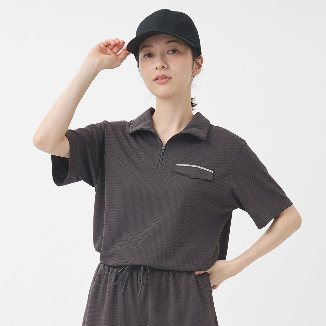 ◆ H_リラックスハーフZIPポロシャツ ¥3,400(税込¥3,740)