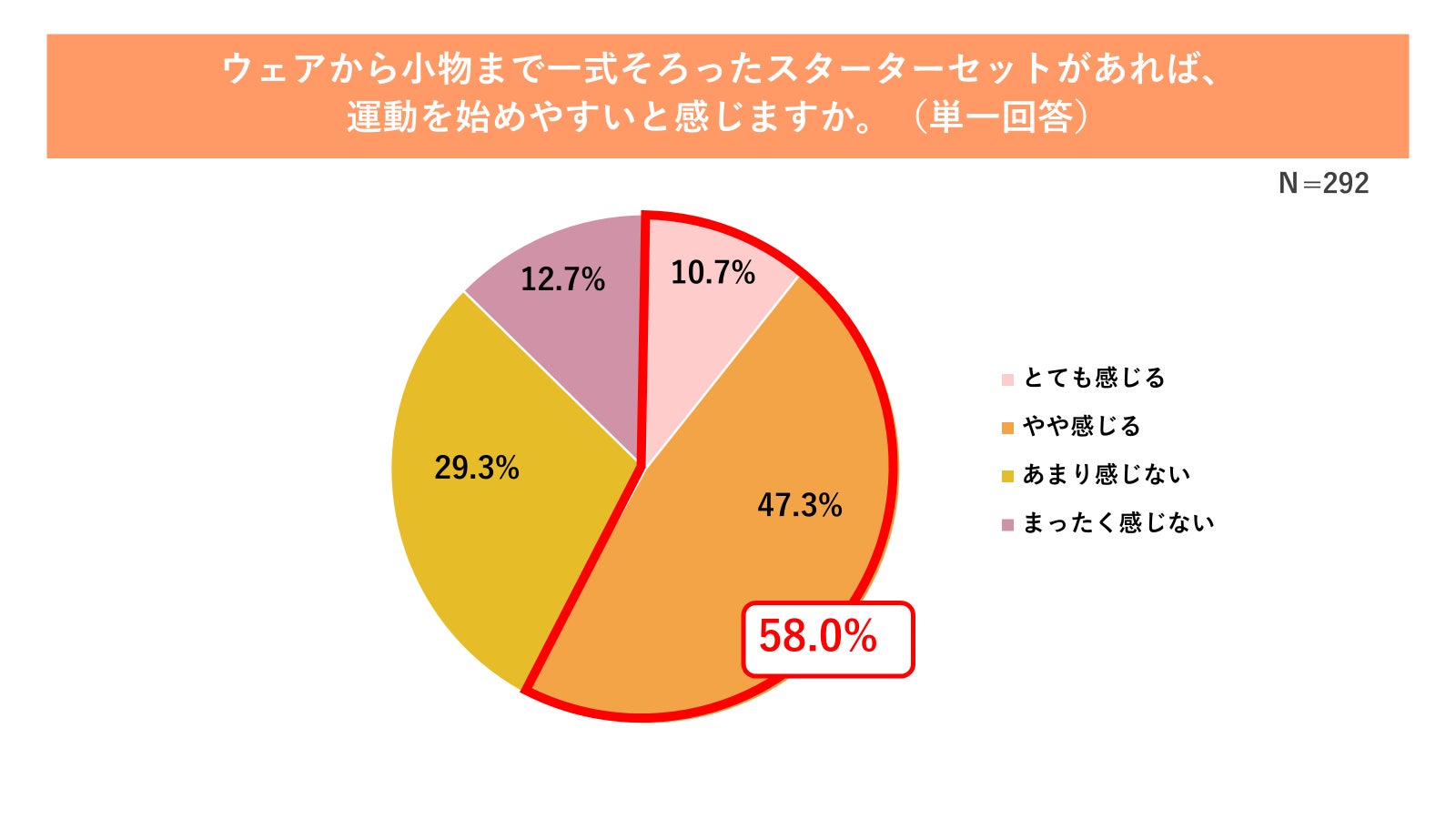 こうした“何を選べばいいか分からない”という層に対し、ウェアから小物まで一式そろったスターターセットの需要を調査したところ、58.0%が「スターターセットがあれば運動を始めやすいと感じる」と回答しました(図11参照)。