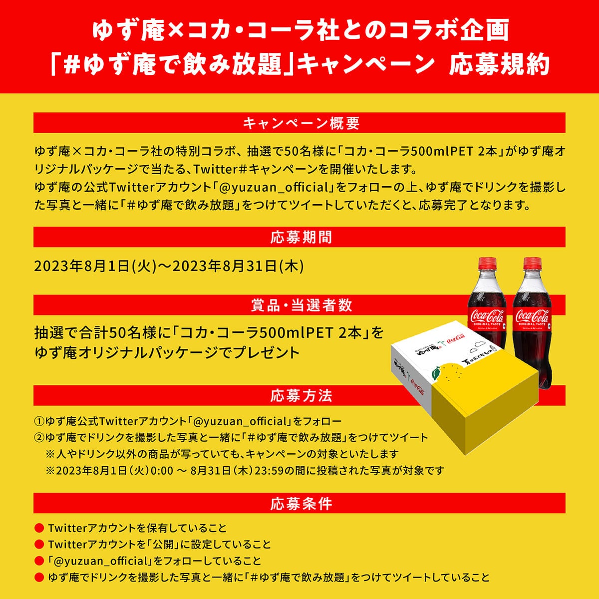 【ゆず庵】オリジナルパッケージの「コカ・コーラ」が当たるSNSキャンペーンを開催